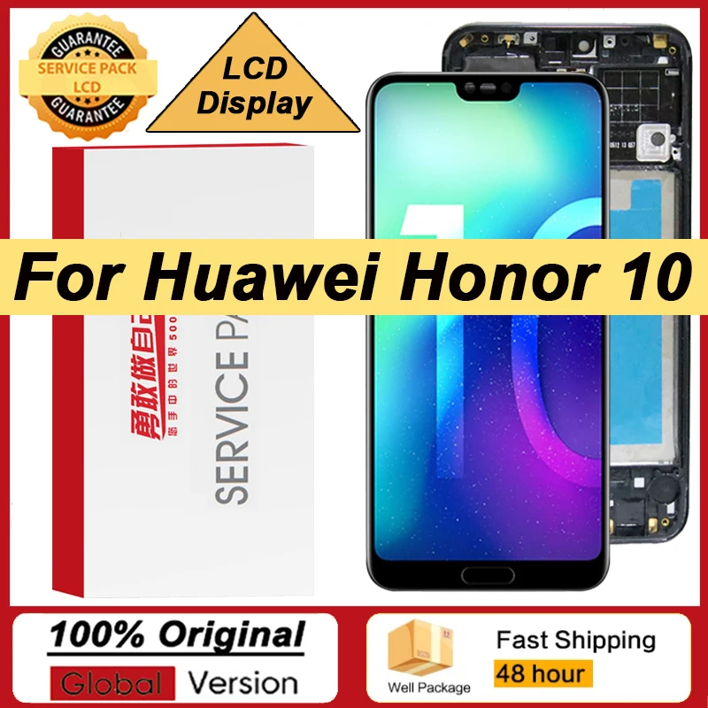100% Оригинальный ЖК-дисплей с рамкой и сканером отпечатков пальцев для HUAWEI Honor 10 дисплей сенсорный экран дигитайзер в сборе детали для ремонта
