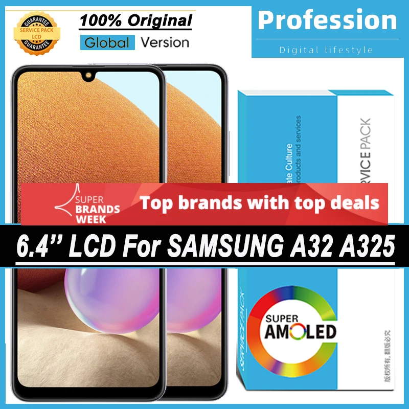 100% Оригинальный 6,4 ''AMOLED дисплей для Samsung Galaxy A32 4G A325 SM-A325F ЖК сенсорный экран дигитайзер в сборе запасные части
