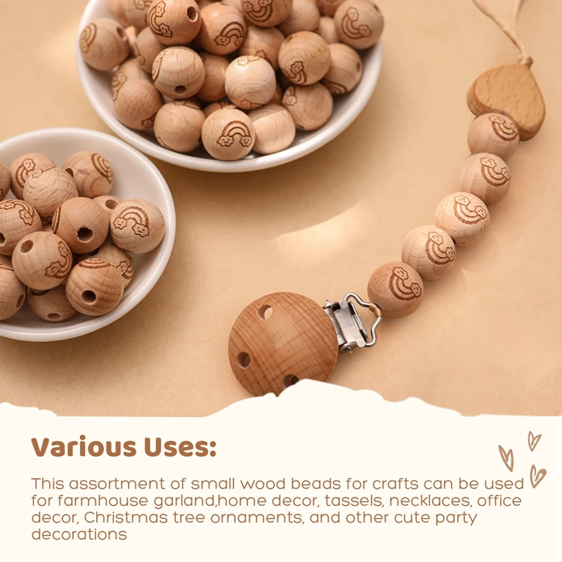 Let's Make 10 шт 16 мм Буковые бусины деревянные Прорезыватели с принтом круглые бусины безопасные настраиваемые самодельные соски цепочки и ожерелья Аксессуары