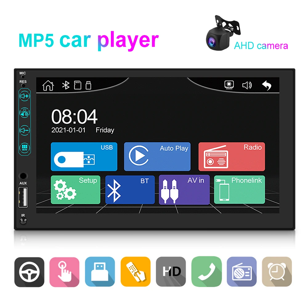 Характеристики:Размеры: 7,0 дюймовНапряжение: DC12VАудио усилитель: 7388Разрешение экрана: 1024*600Выходная мощность: 4*45 ВтИнтерфейс USB: USB2.0Радиус действия: FMФормат аудио: MP3/WMA/AAC/APE/OGG/M4A/RA/WAVФормат видео: H264 DIVX HD(720P 1080I 1080P)AVI/FLV/MKV/RMVB/MPEG/ASF/TS/H264/QTФормат изображения: JPEG/PNG/BMP/GIF/TIFFЯзык OSD: английский/испанский/португальский/упрощенный китайский/традиционный китайский/немецкий/французский/Турецкий/японский/русский/итальянский/Польский/Голландский/Датский/Греческий/израильскийПосылка включает в себя:1 х Автомобильный MP5 плеер1 х Кабель питания1 х аудио кабель1 х пульт дистанционного управления1 х пульт управления рулем1 x Внешний микрофон1 x Руководство пользователя