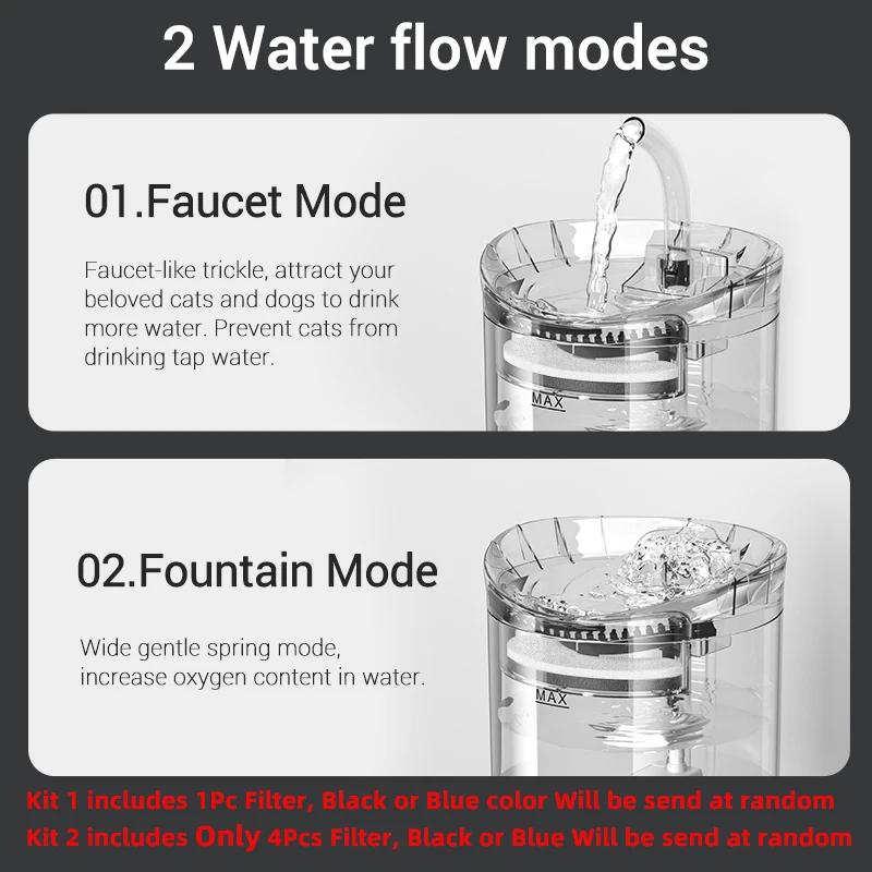 2 режима потока воды (режим крана/режим фонтана), обеспечивая чистую проточную воду, сделайте ваших питомцев счастливее и здоровее.