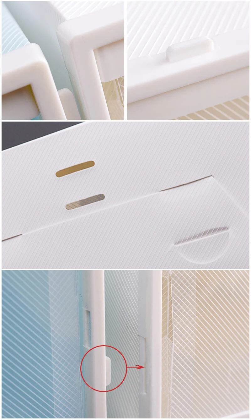 Вентиляционные отверстия обеспечивают циркуляцию воздуха и предотвращение запаха. Прозрачное окно для просмотра содержимого, стек нескольких единиц для максимального хранения.