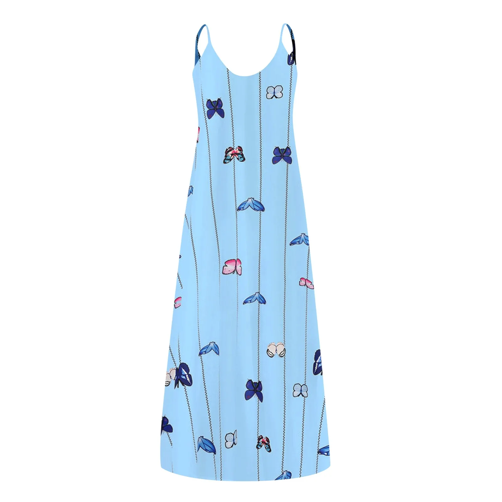Женское длинное платье на бретельках, Повседневное платье без рукавов с цветочным принтом и бабочками, лето 2021, 2021