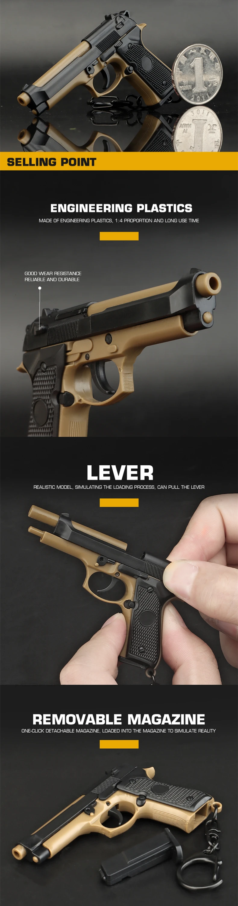 Модель M92 1:4, Брелоки для ключей, тактическая лампа, декоративный пластиковый брелок для ключей, подвижный рычаг и журнал