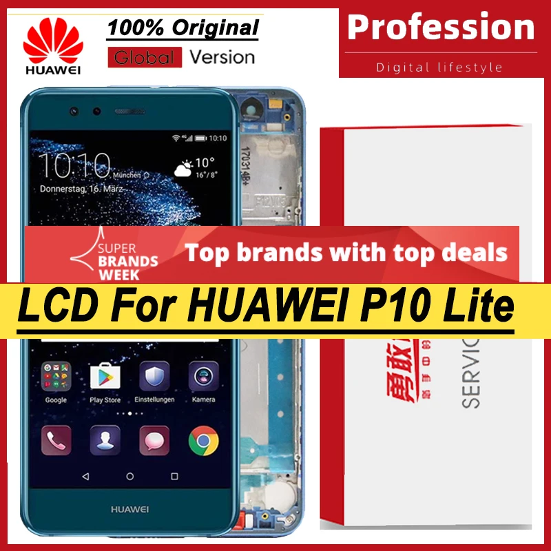 100% Оригинальный 5,2 ''ЖК-дисплей с рамкой для Huawei P10 Lite WAS...