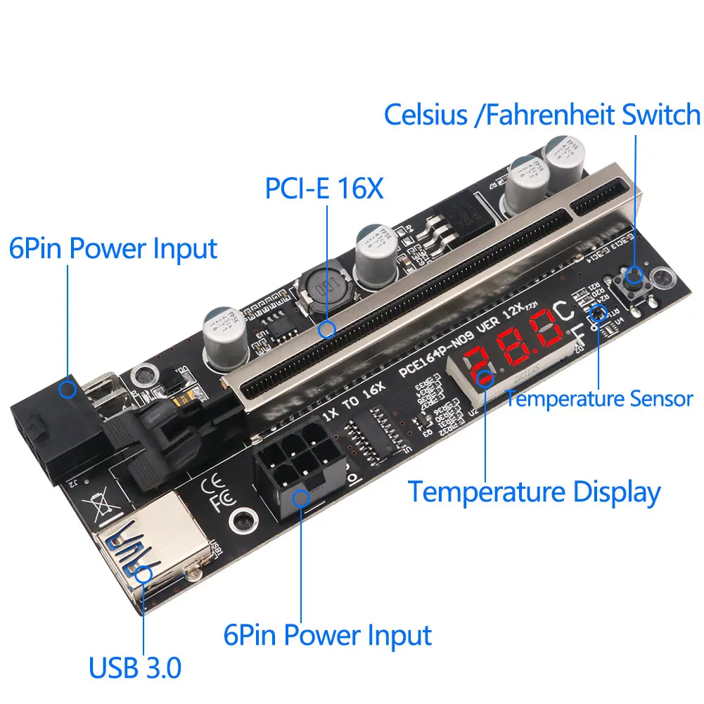USB 3,0 PCI Express 16X на 1X карта расширения PCI-E Райзер адаптер конвертер с датчиком температуры