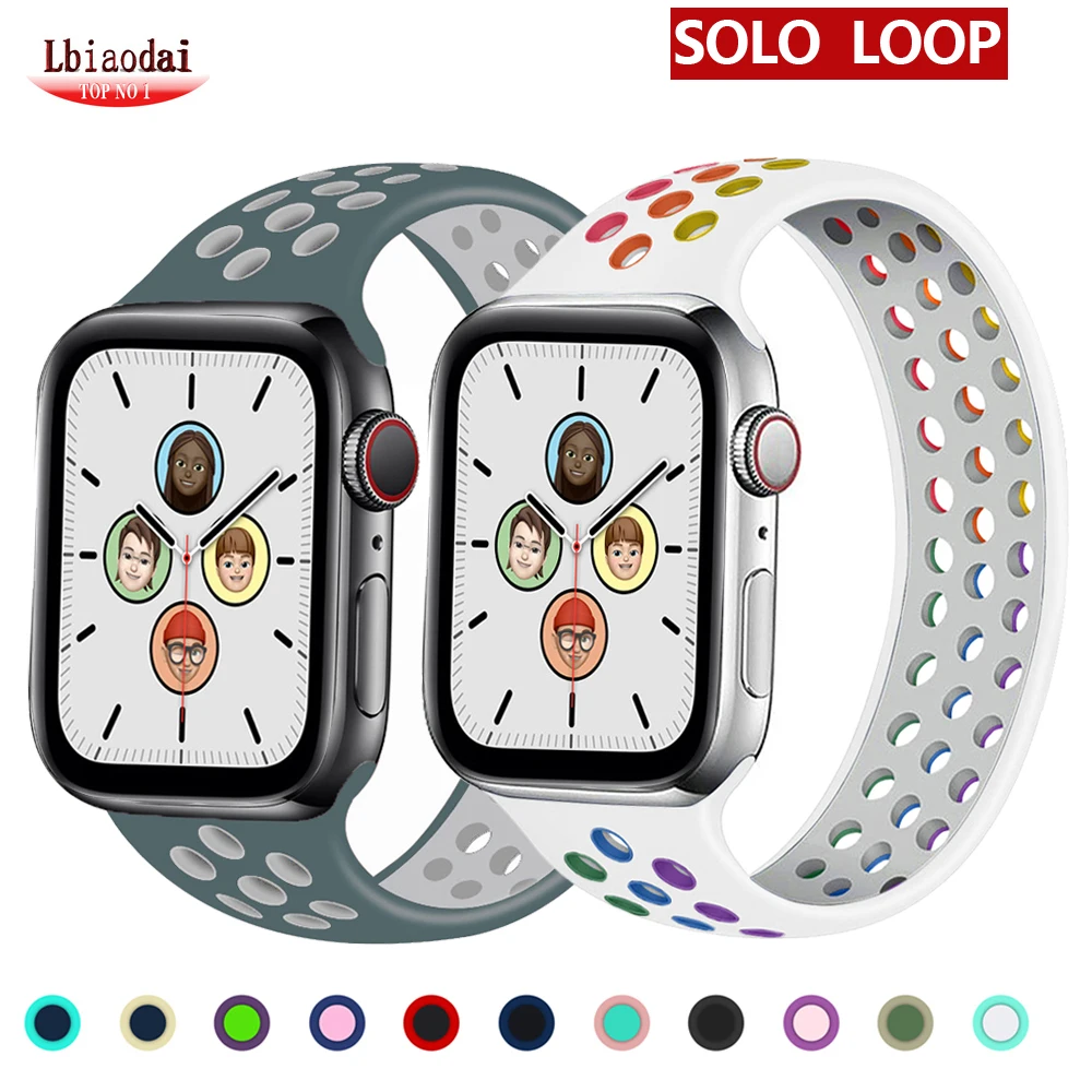 Solo Loop для Apple Watch Band 44 мм 40 мм 38 мм 42 мм дышащий эластичный пояс силиконовый браслет iWatch 5/4/3/SE/6 ремешок