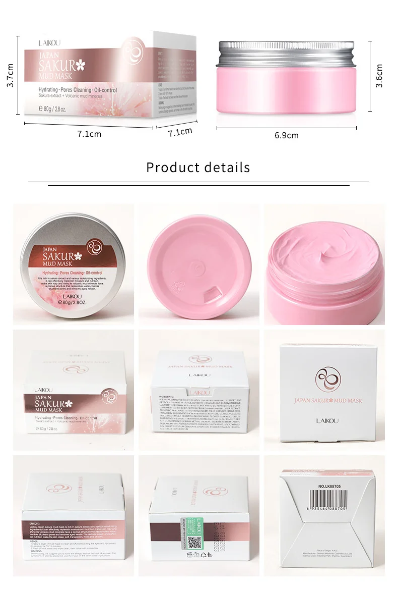 Маска для лица LAIKOU с цветами вишни, розовая грязевая маска для л...