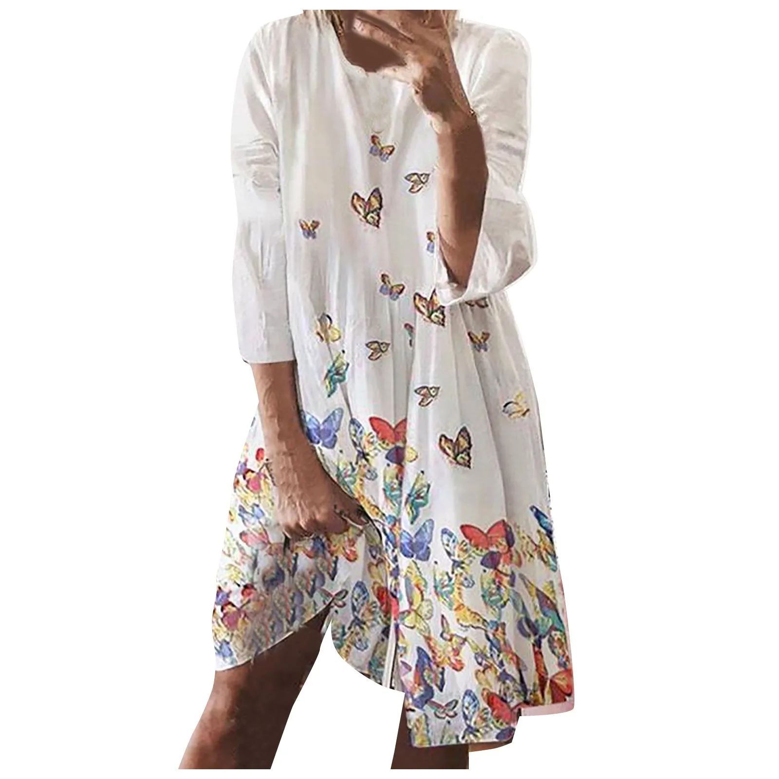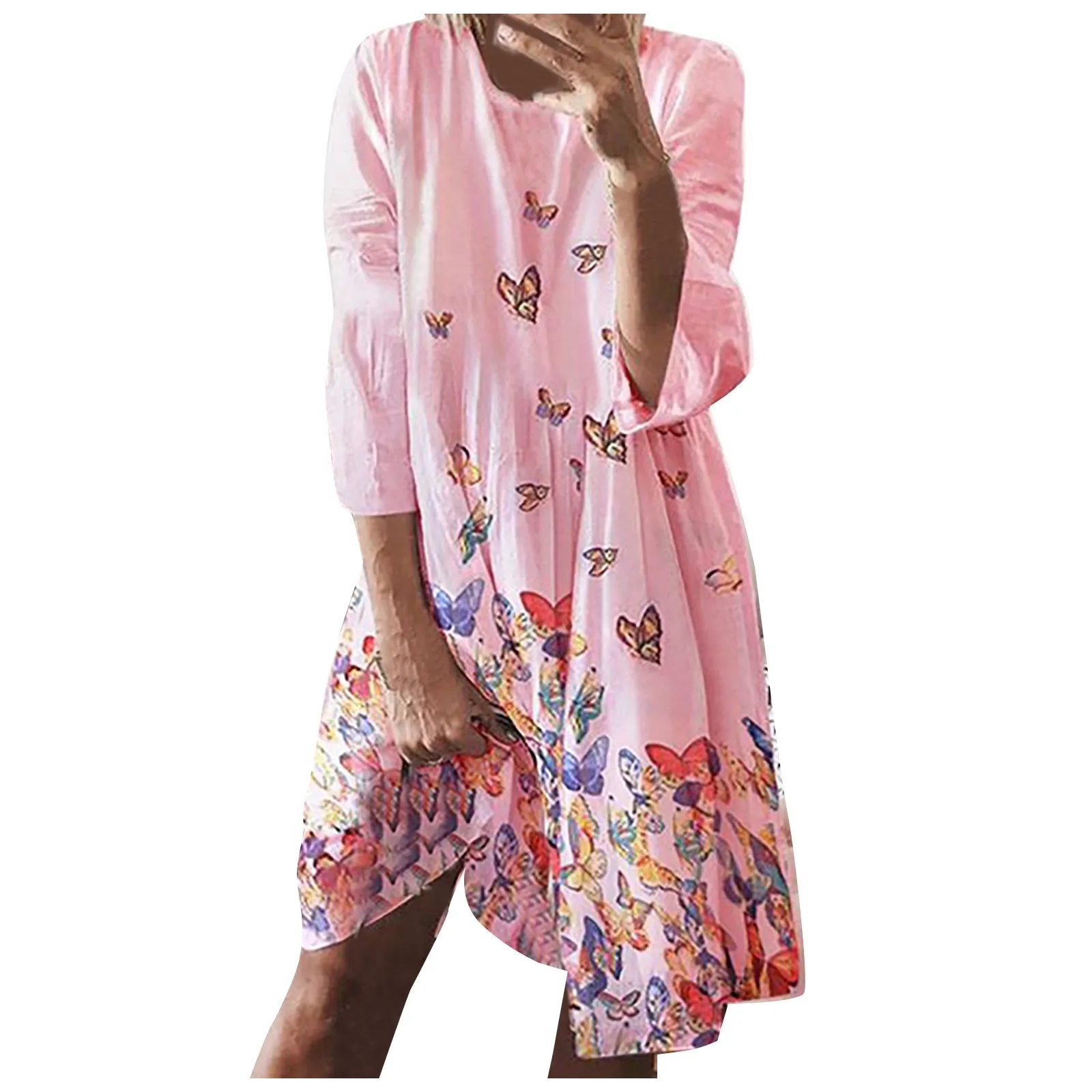 Женская Повседневная удобный, вокруг шеи бабочка/лиственным принтом платье с длинными рукавами