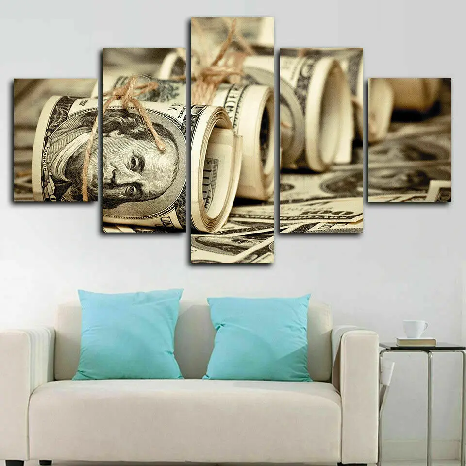 Холст без рамы, 5 шт., 100 долларов, купюра, Бенджамин, Франклин, п...