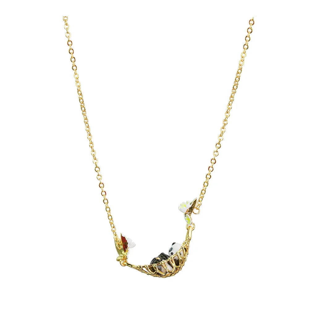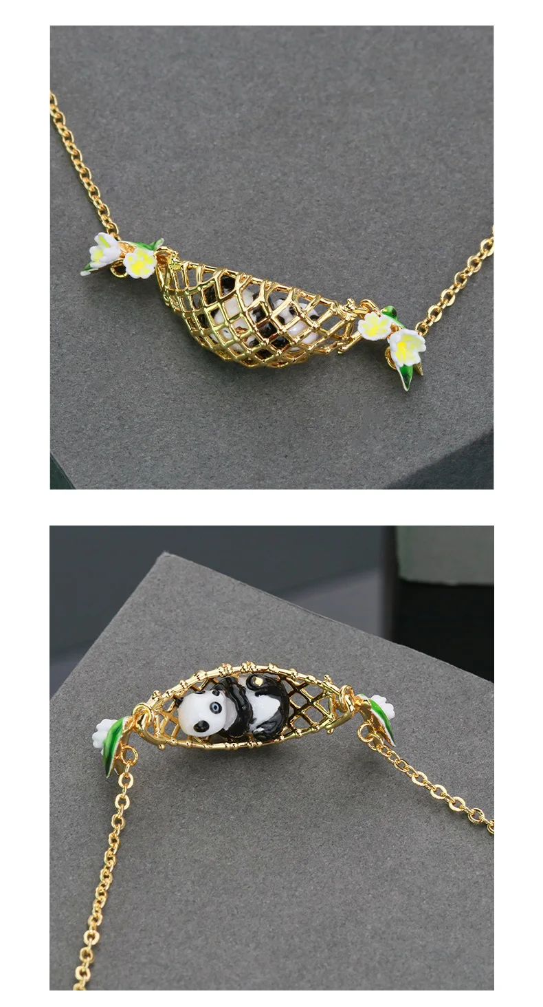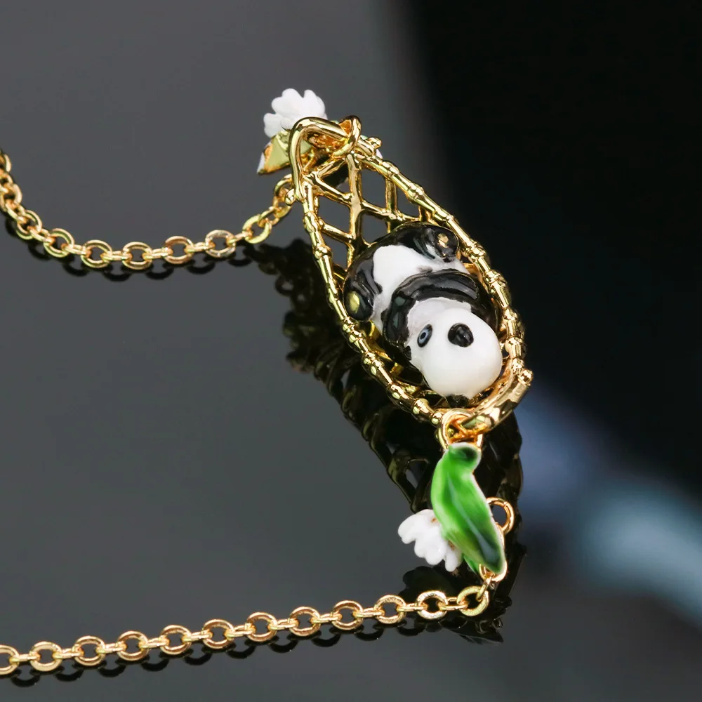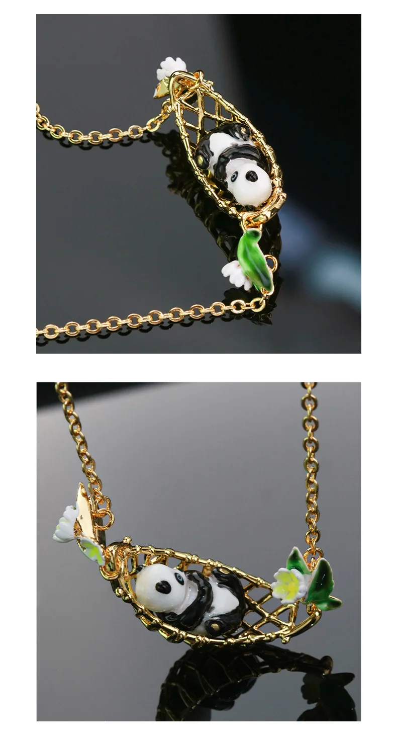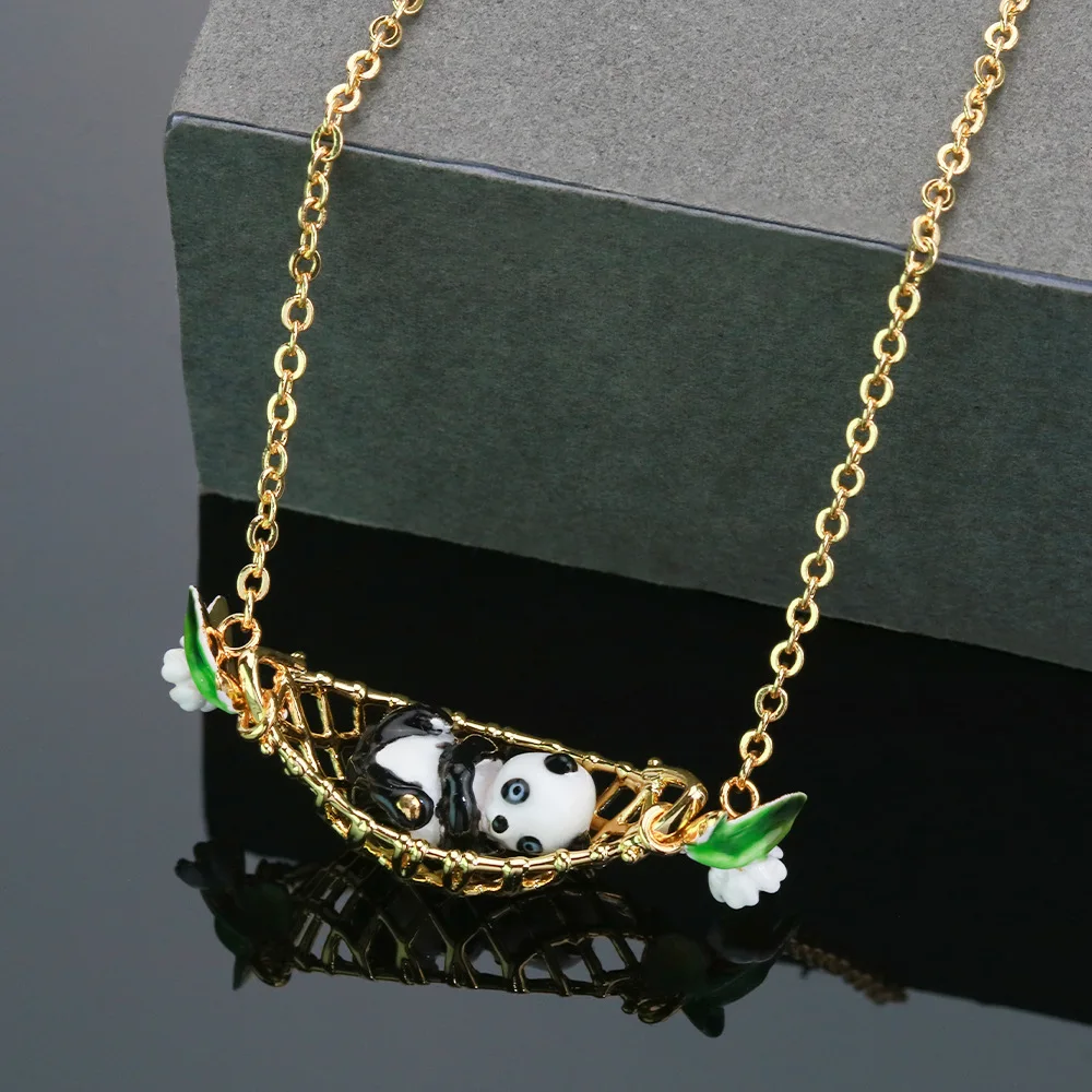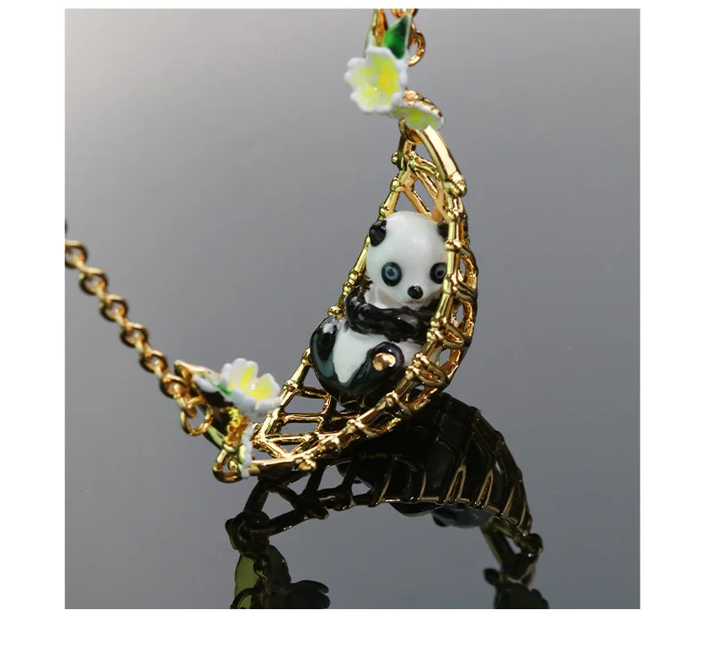 Милая подвеска Панды Ожерелье для женщин Простой Элегантный медная эмалированная покрытием животных китайский Стиль украшения на шею аксессуары