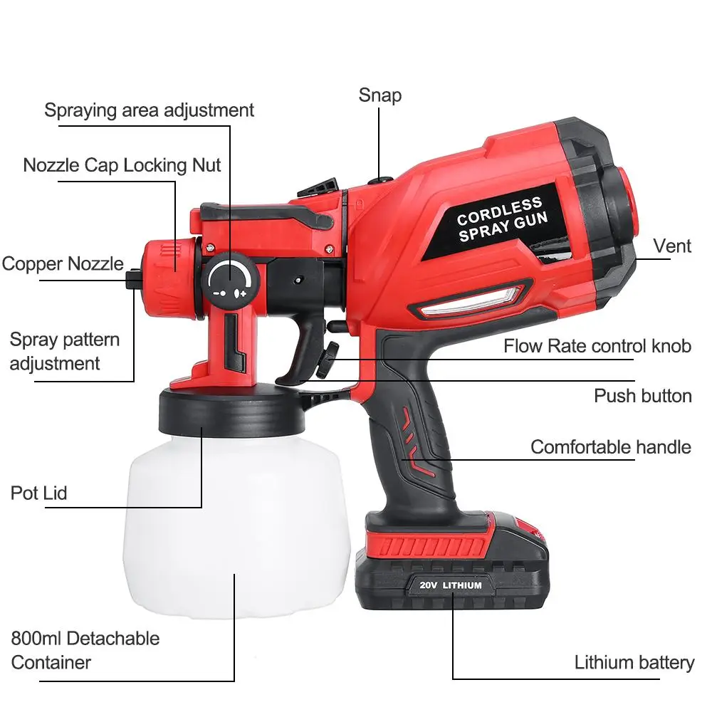 Электрический беспроводной распылитель краски, 20 в, 800 мл
