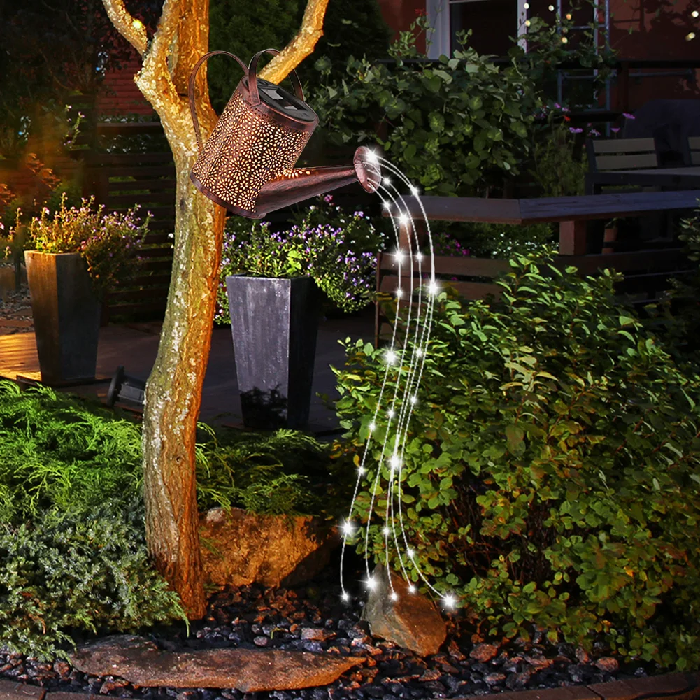 Светодиодный чайник на солнечной батарее, полая кованая железная гирлянда для полива, уличный водонепроницаемый светильник для двора, художественное украшение, садовое украшение