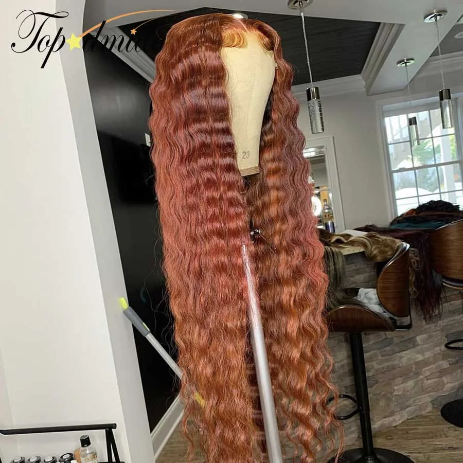 Topodmido Ombre коричневый цвет 13x 4 кружевной передний парик бразильские волосы без клея кружевной парик с глубокой волной для женщин 4x4 закрытые парики из человеческих волос