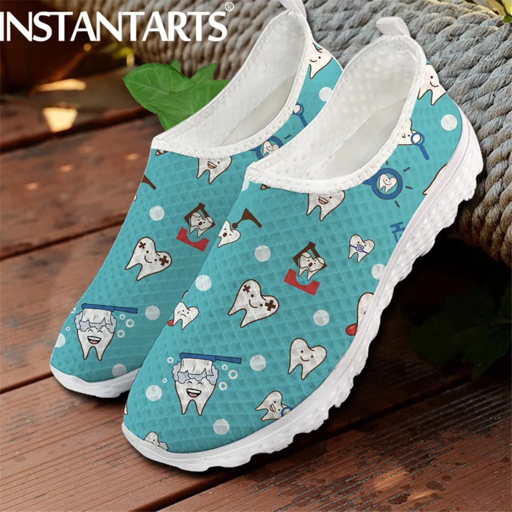 Женские дышащие кроссовки INSTANTARTS, дизайнерская обувь на плоской подошве, с забавным мультяшным стоматологическим принтом, лоферы без шнуровки, обувь, тарелки