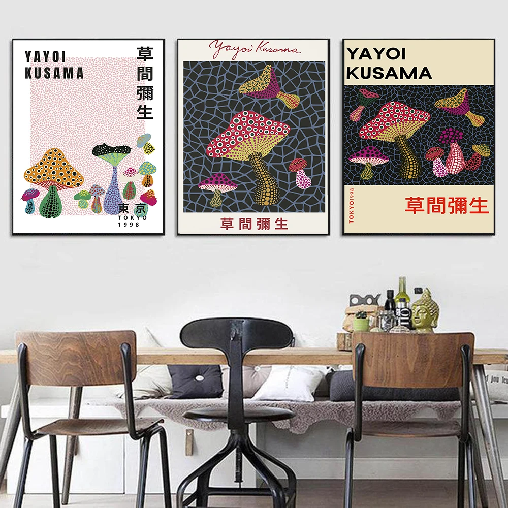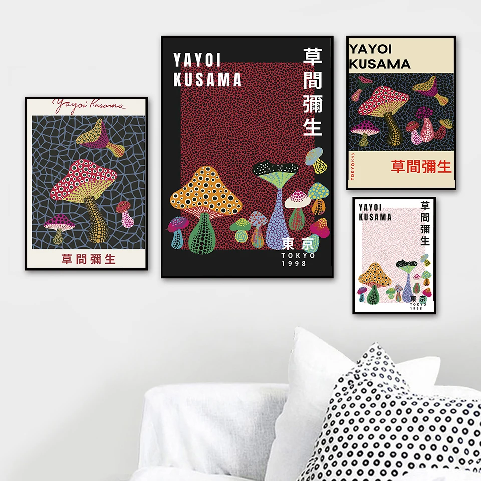 Yayoi Kusama художественные выставочные плакаты и печать галерея настенное искусство картина в виде грибов музейная Картина на холсте гостиная домашний декор