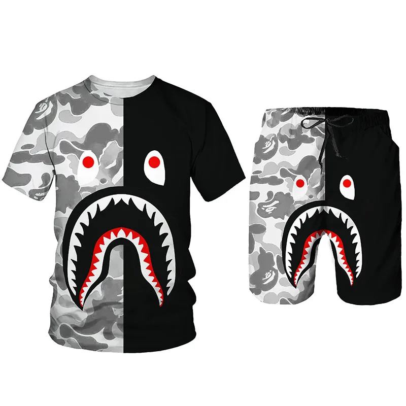 Футболка и шорты с 3D-принтом для мужчин, мультяшный комплект с большим Ротом, спортивная одежда, костюм с круглым вырезом и короткими рукавами, летняя одежда