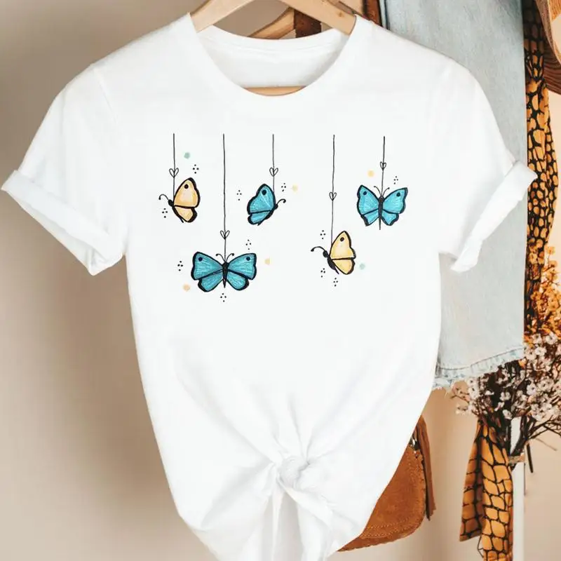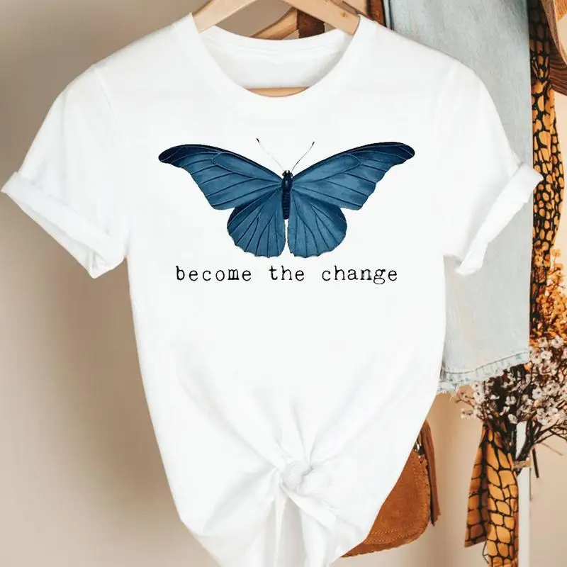 Футболка женская с принтом бабочек и графическим принтом, милая Пов...