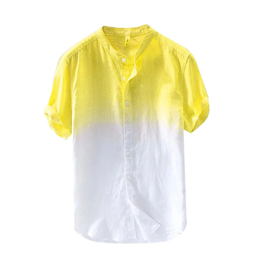 Летняя мужская крутая и тонкая дышащая рубашка с воротником, окрашенная градиентная хлопковая рубашка