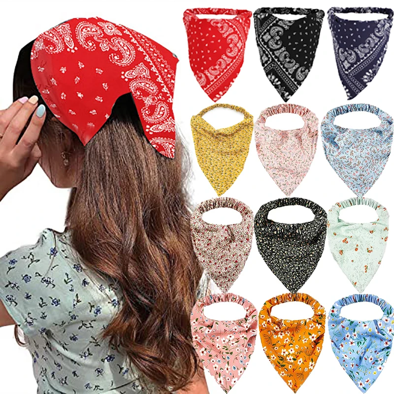 Цветочный Эластичный шарф для волос бандана повязки на голову Женский шифоновый головной платок Тюрбан Винтажные треугольные повязки для волос аксессуары для волос для девочек