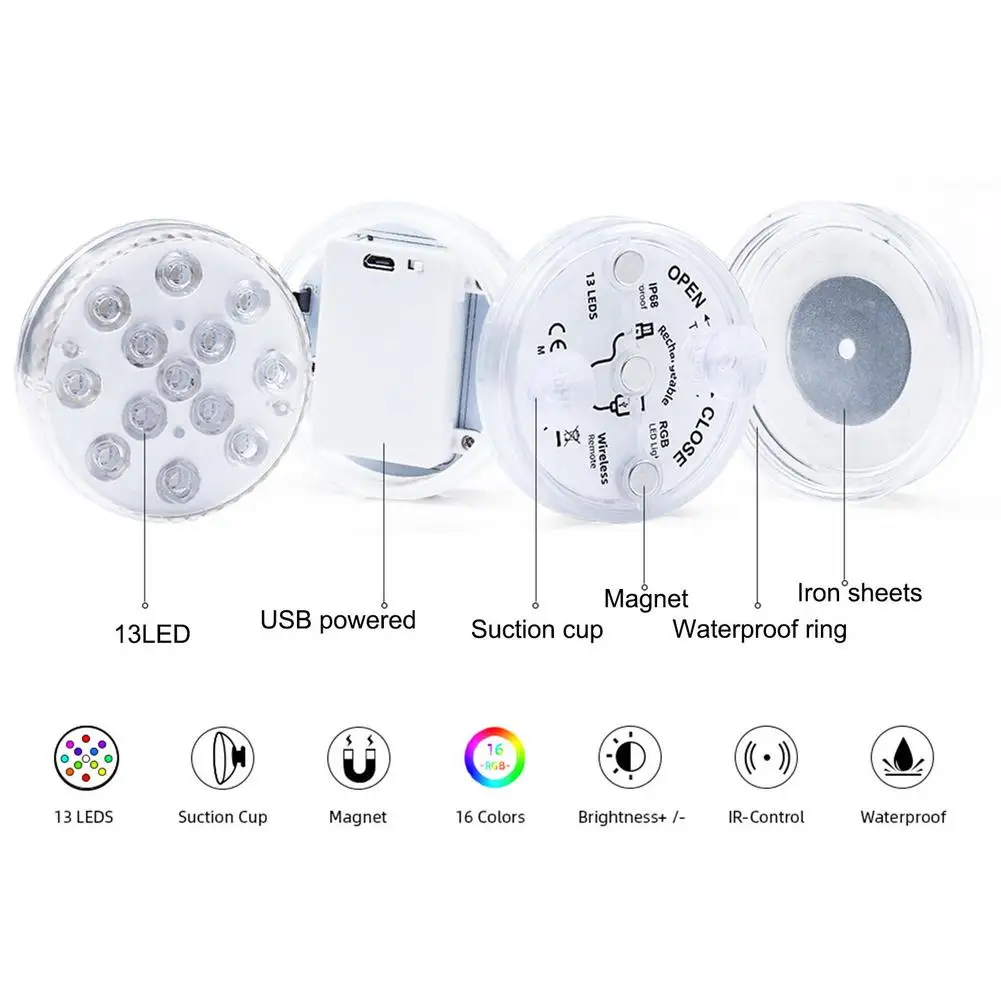 RGB-подводная лампа для бассейна, 13 светодиодов, USB, с пультом ДУ