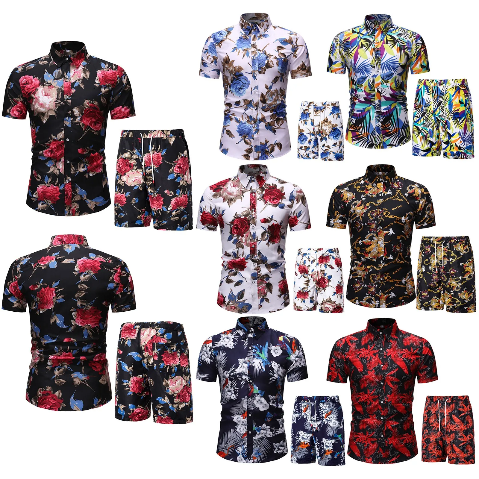 Мужчины в гавайском стиле комплекты с принтом 2021 летние шорты рукавами и пуговицами для детей; Рубашка пляжные шорты Уличная Повседневная tong chongfengмужской костюм из 2 предметов S-3XL INCERUN