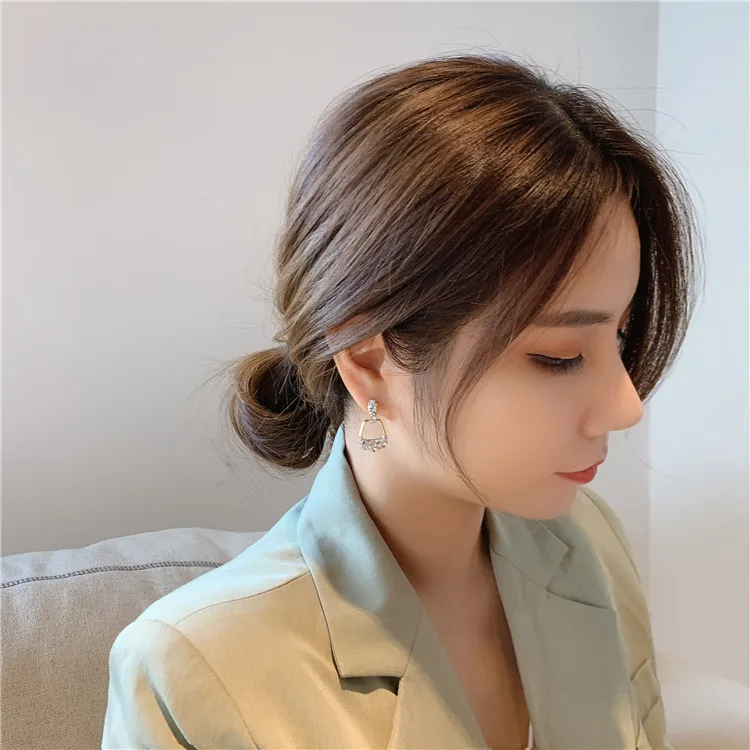 Серебряные Простые геометрические серьги Стразы S925 пробы с Красной сеткой, индивидуальные модные серьги с холодным ветром, Женские Ювелирные изделия