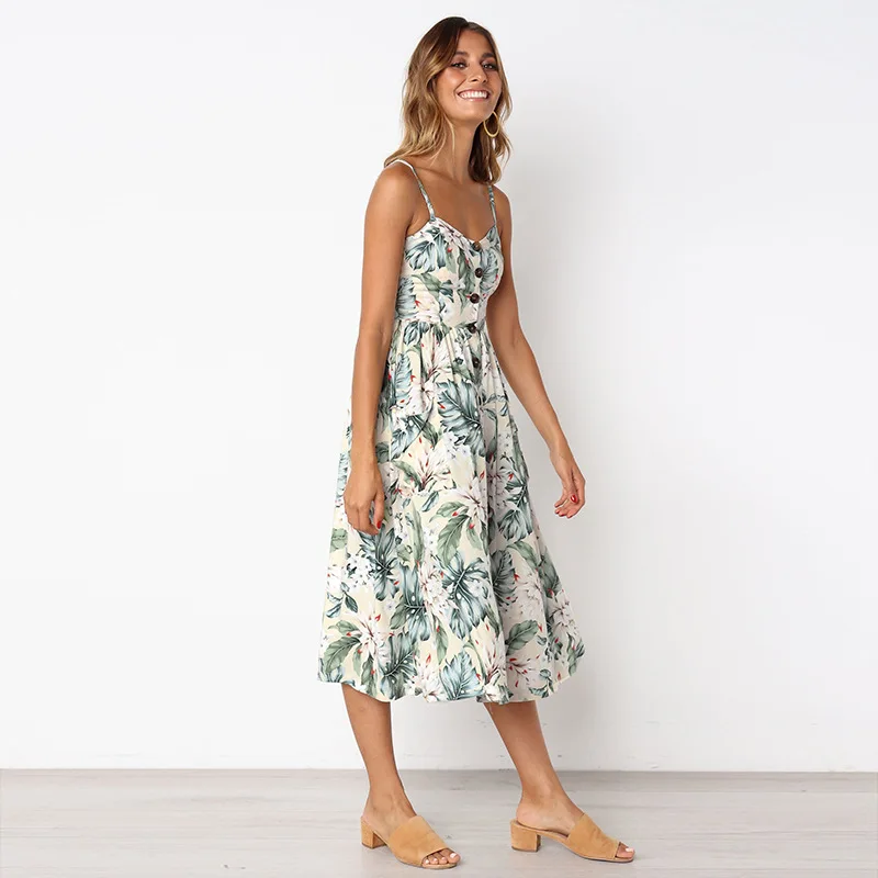 Женское винтажное платье миди на пуговицах, повседневное пляжное платье с открытой спиной, в горошек и в полоску, пикантный цветочный сарафан в стиле бохо, лето 2021