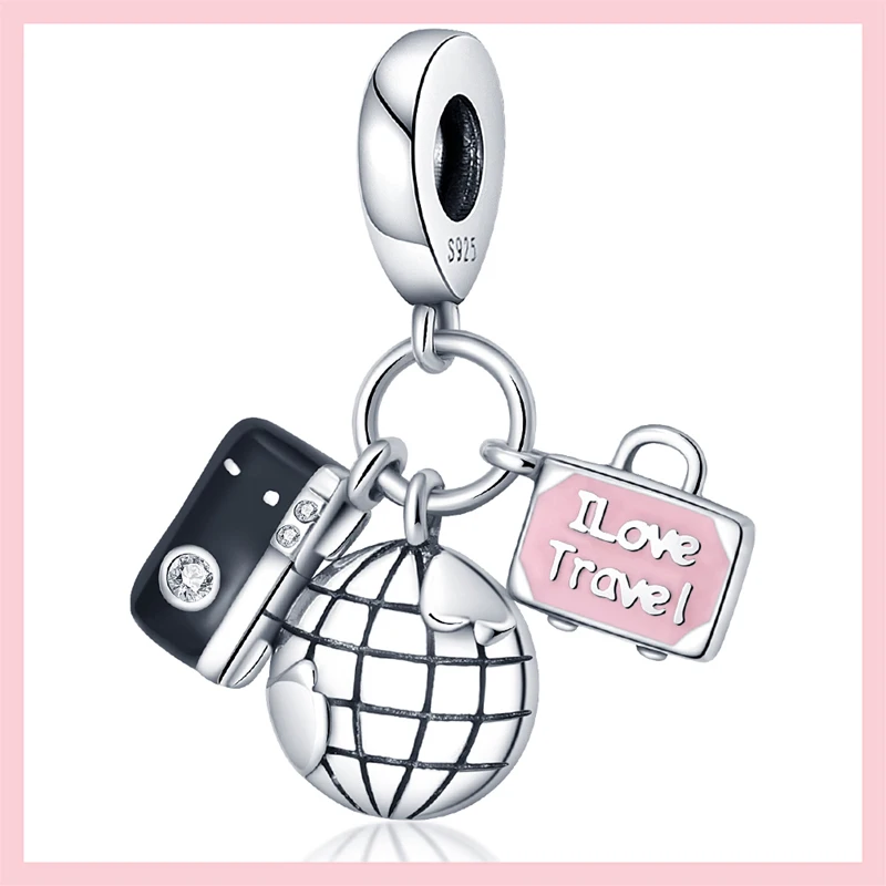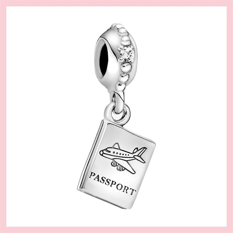 Женский серебряный 925 пробы, чемодан с воздушным шаром, подвески паспорт, подходит для оригинального браслета Pandora, украшения сделай сам