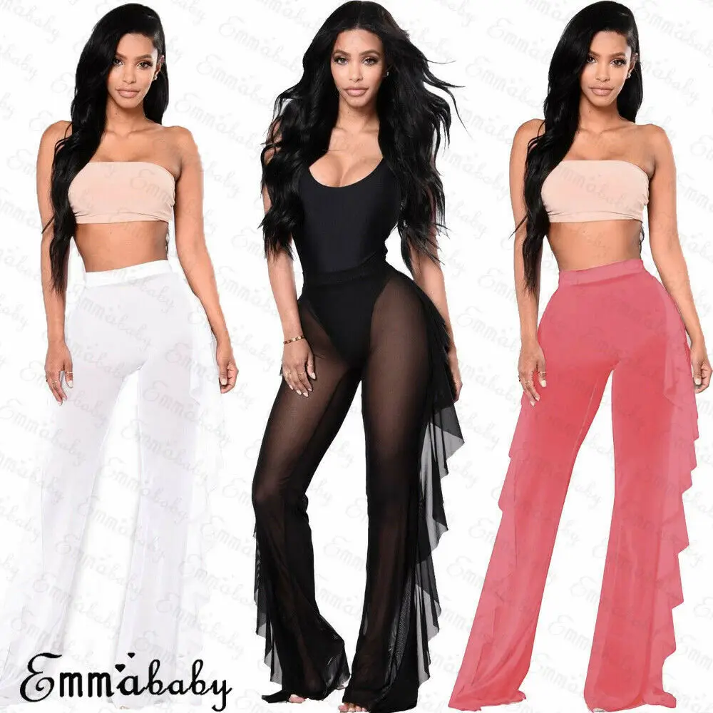 Новые Сексуальные женские пляжные сетчатые брюки с оборками, прозра...