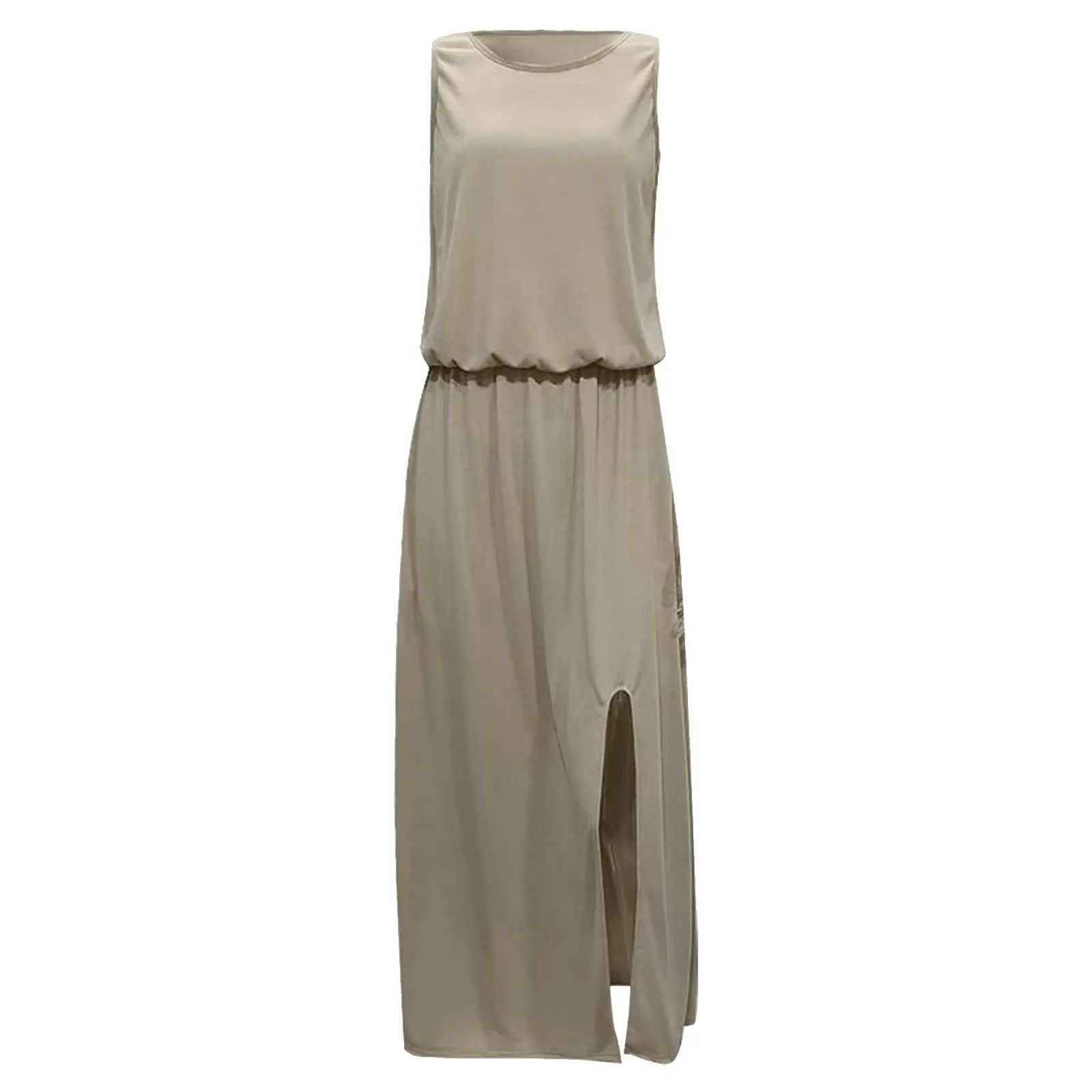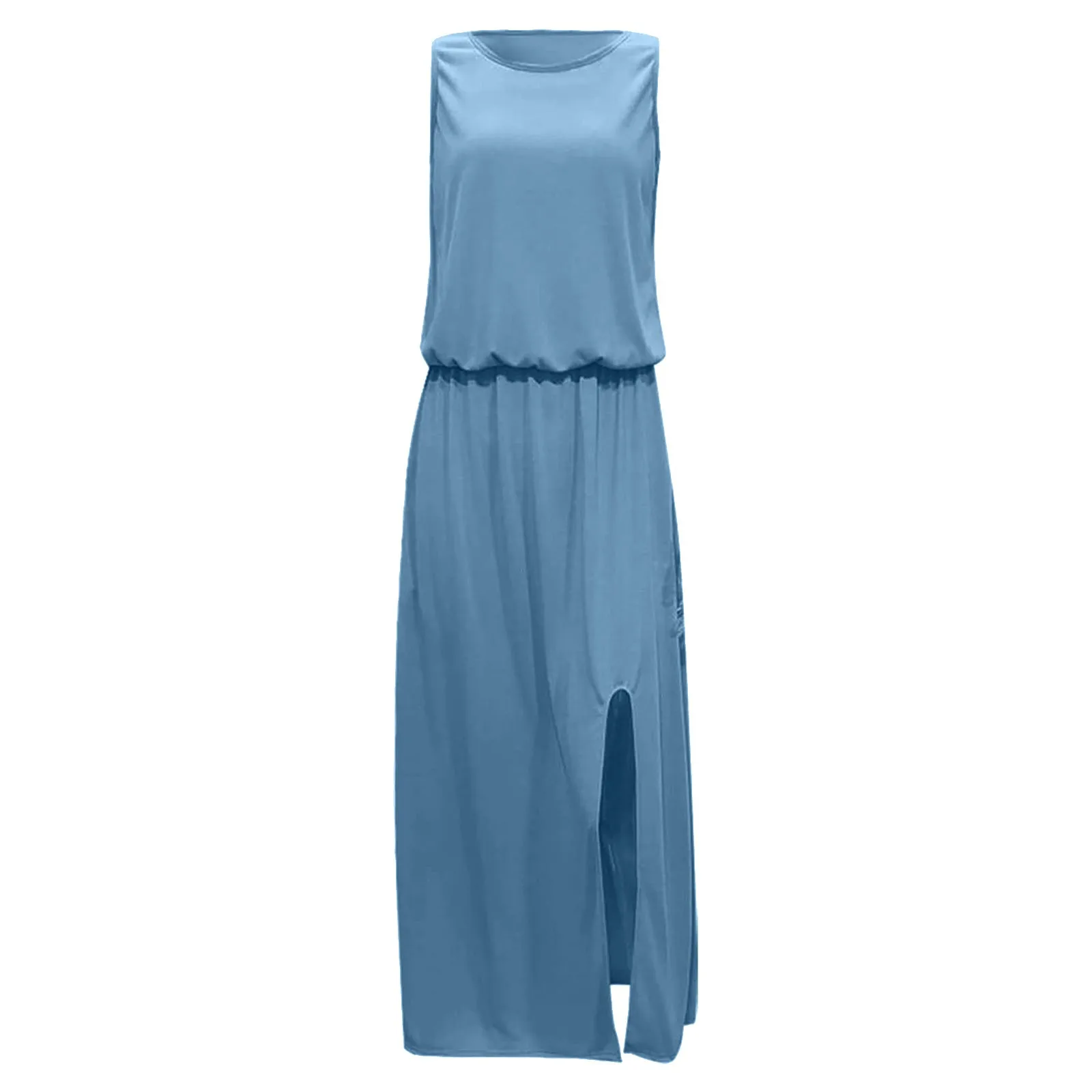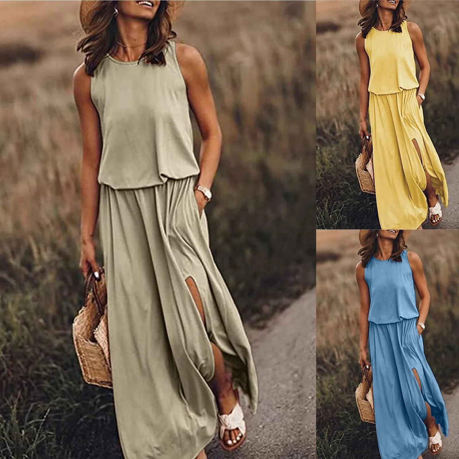 2021 летние женские повседневные пляжные Платья, женское однотонное длинное платье без рукавов, открытое вилкой, женская одежда Для Женщин # Y10