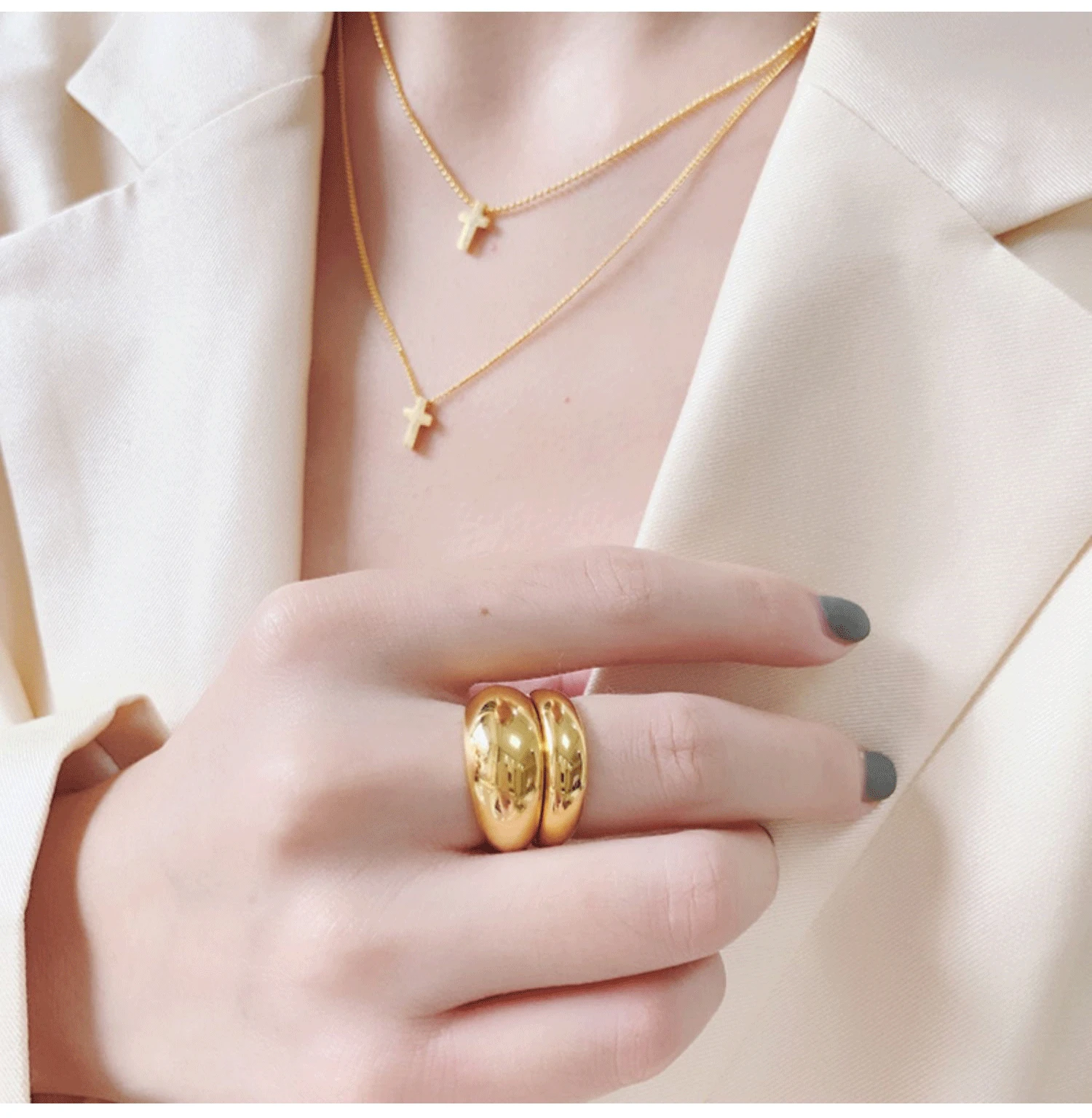 Новое массивное геометрическое кольцо, регулируемое Золотое кольцо, минималистичный купол, гладкое кольцо для женщин и девочек, модный подарок для ювелирных изделий