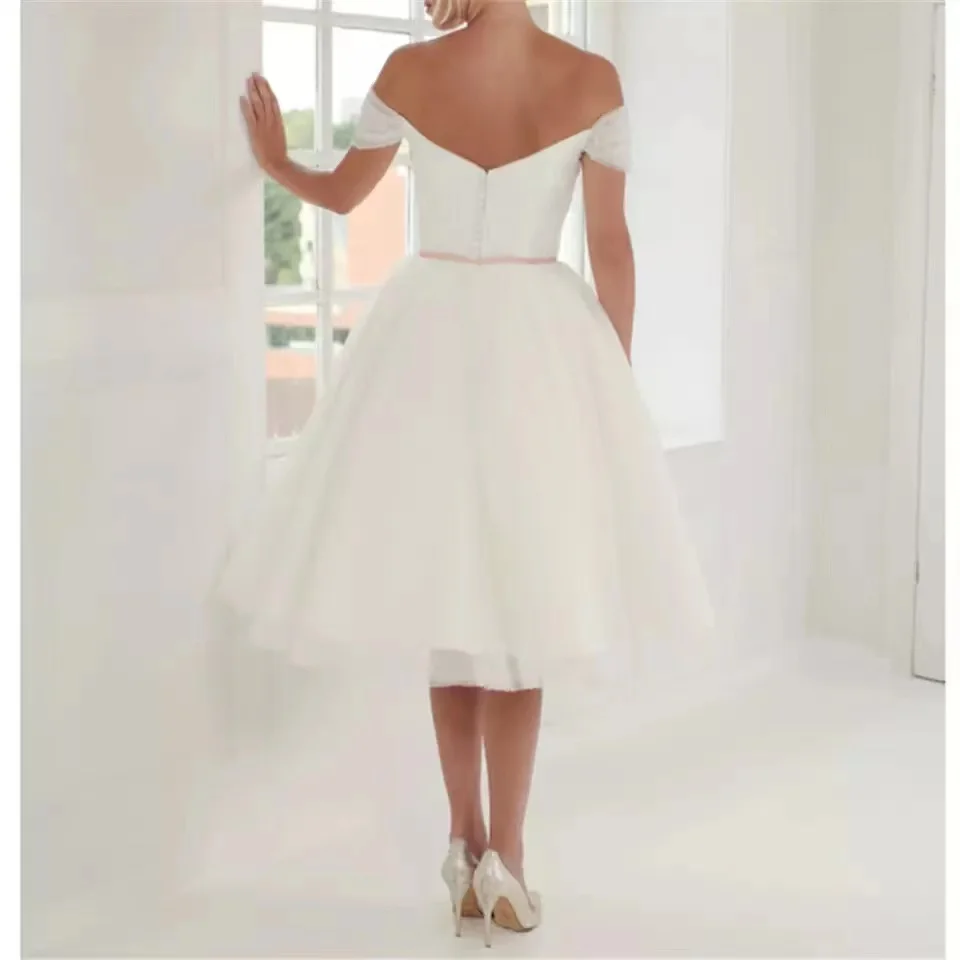 Винтажное Короткое свадебное платье цвета слоновой кости, с открытыми плечами, длиной до середины икры, халаты с поясом
