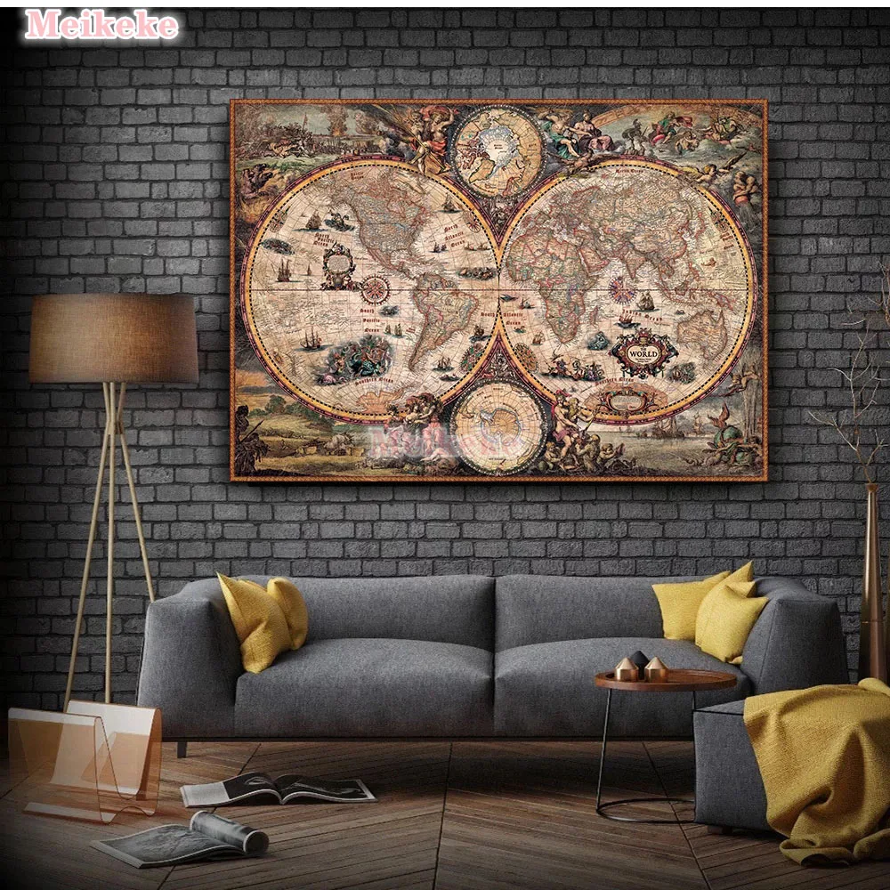 Diy 5D винтажная Старая карта мира, полная Алмазная краска, наборы для вышивки крестиком, художественная Высококачественная морская 3D краска, Алмазная мозаика, подарок
