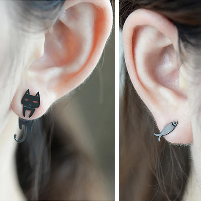 Женские асимметричные серьги для пирсинга кота и рыбы, Подарочные ю...