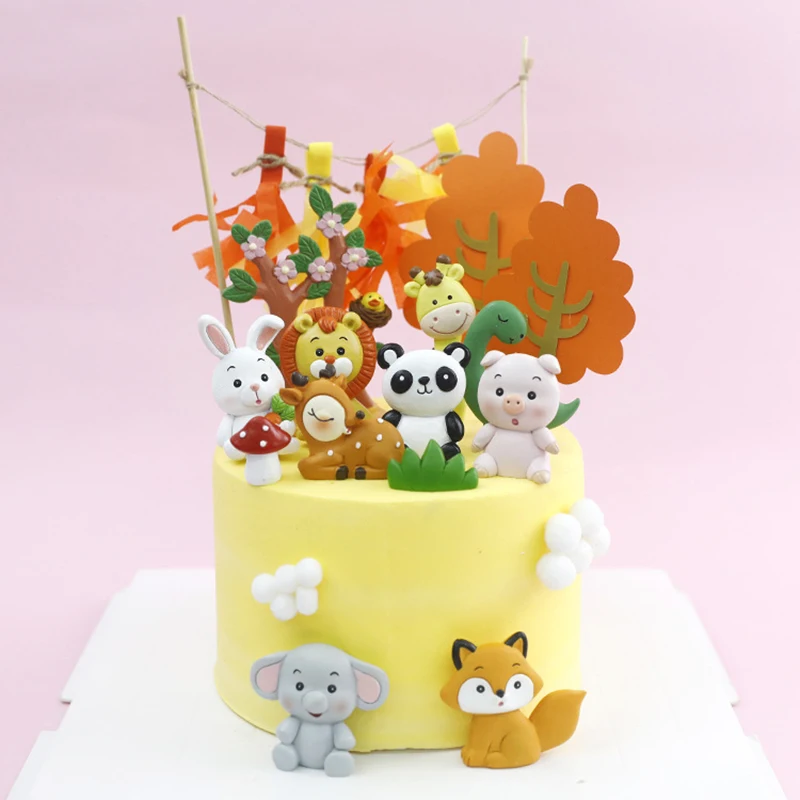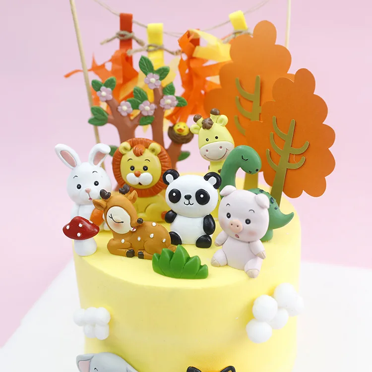 Украшение для торта в виде лесных животных, мягкая глина, Лев, слон...