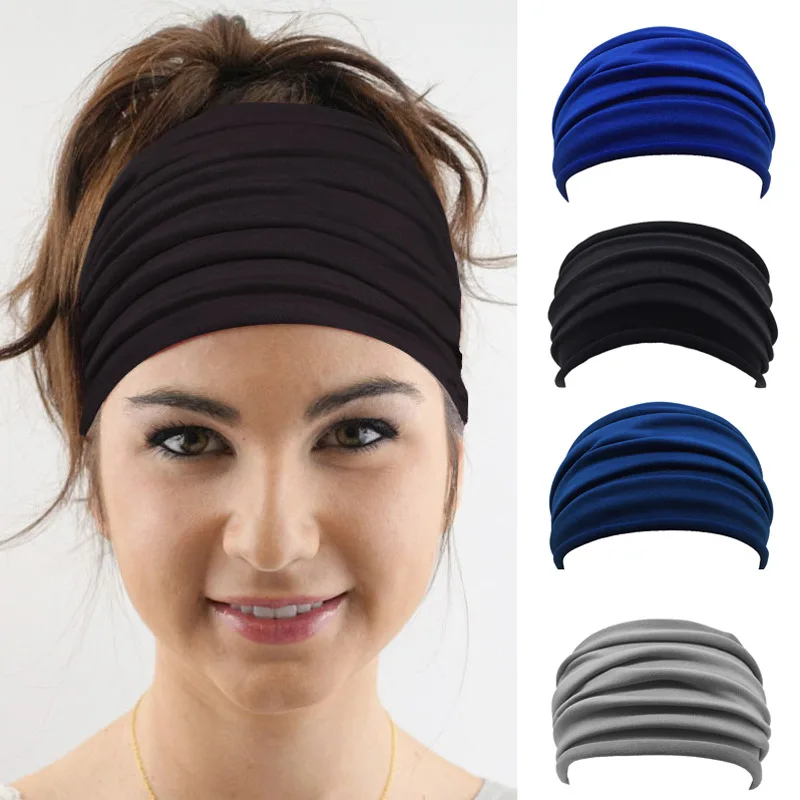 С нескользящей подошвой для пар Упругие Складки лента для волос для йоги, модные широкие Спортивные Повязка На Голову различных Цвета аксессуары для бега летние Стрейчевые фитнес пробежки
