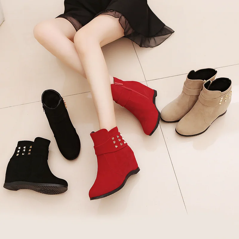 Женские ботинки для осени и зимы, увеличивающие рост, короткие ботинки на толстой подошве, матовые ботинки мартинсы на танкетке, плюс бархатные зимние ботинки для женщин