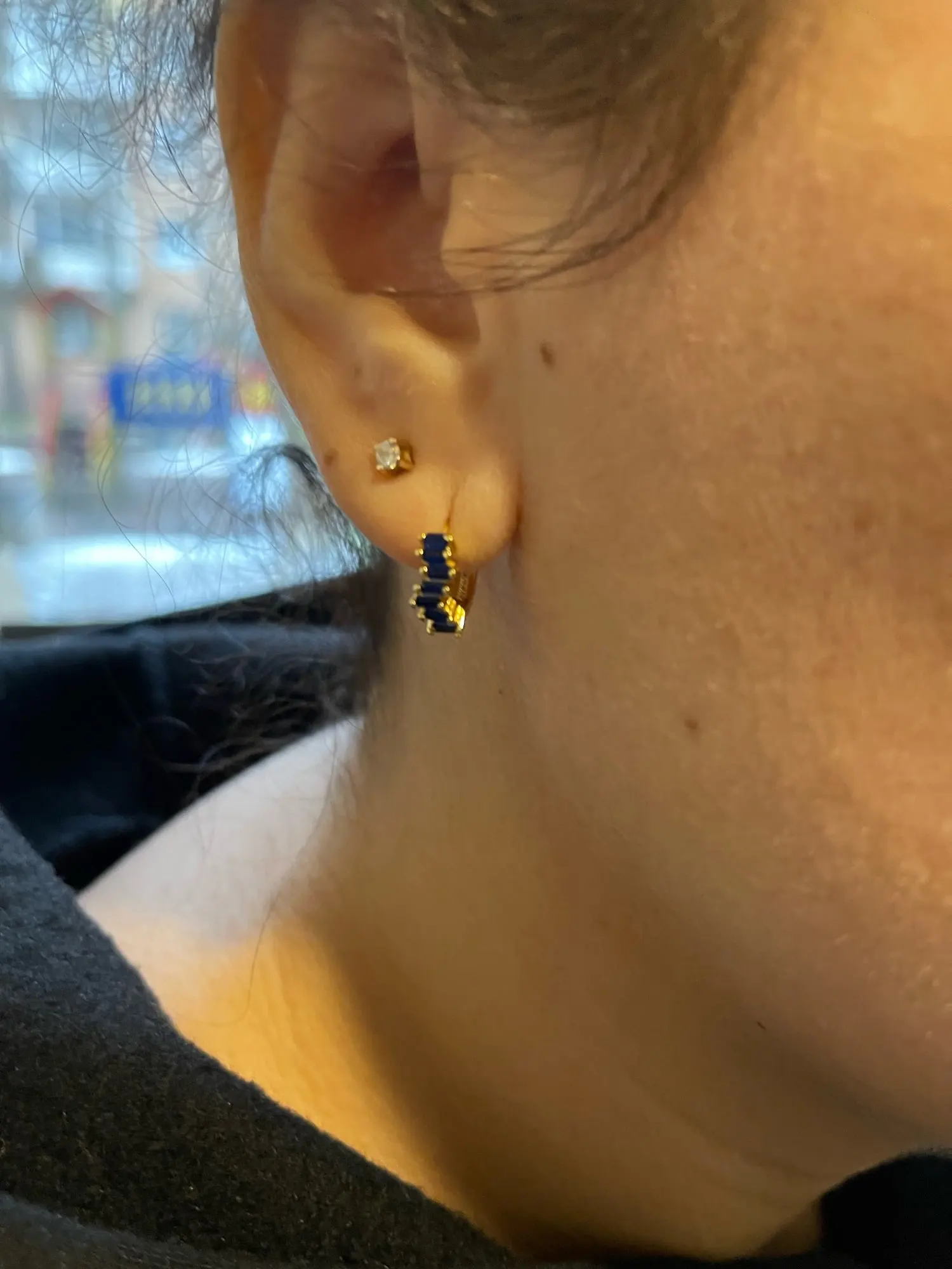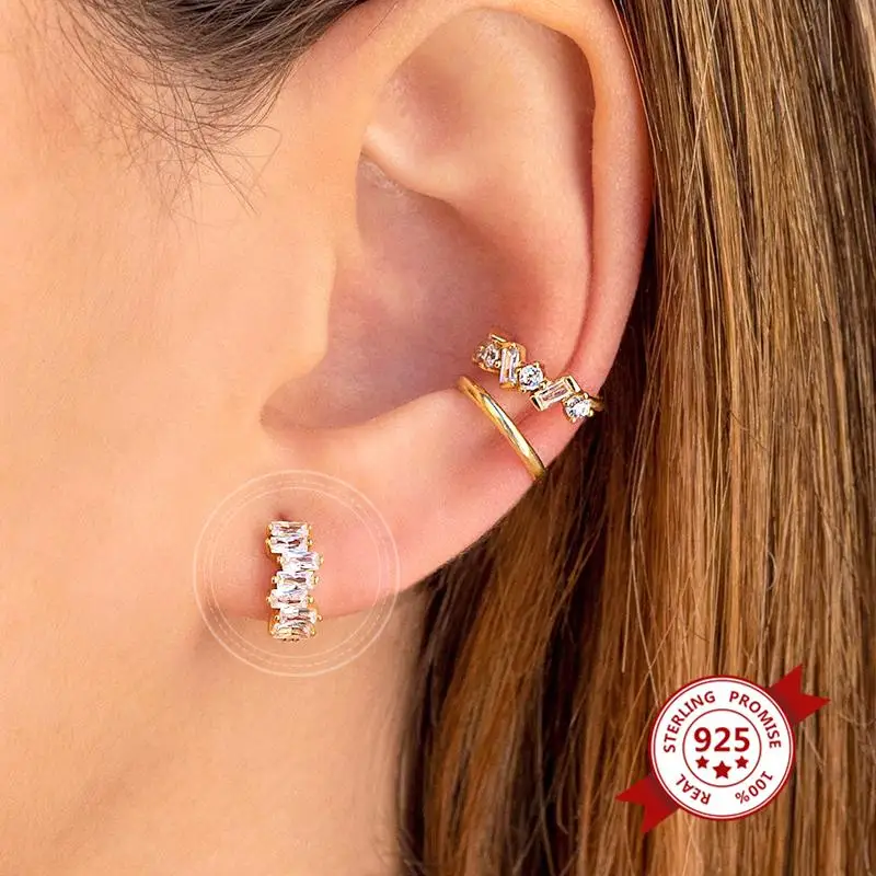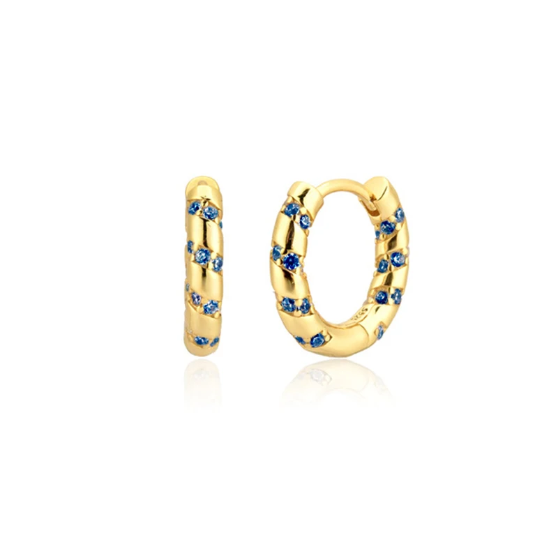 CCFJOYAS 18K позолоченные темно-синий Цирконий серьги в виде колец, европейский и американский 925 пробы серебро круглый пирсинг серьги Huggie