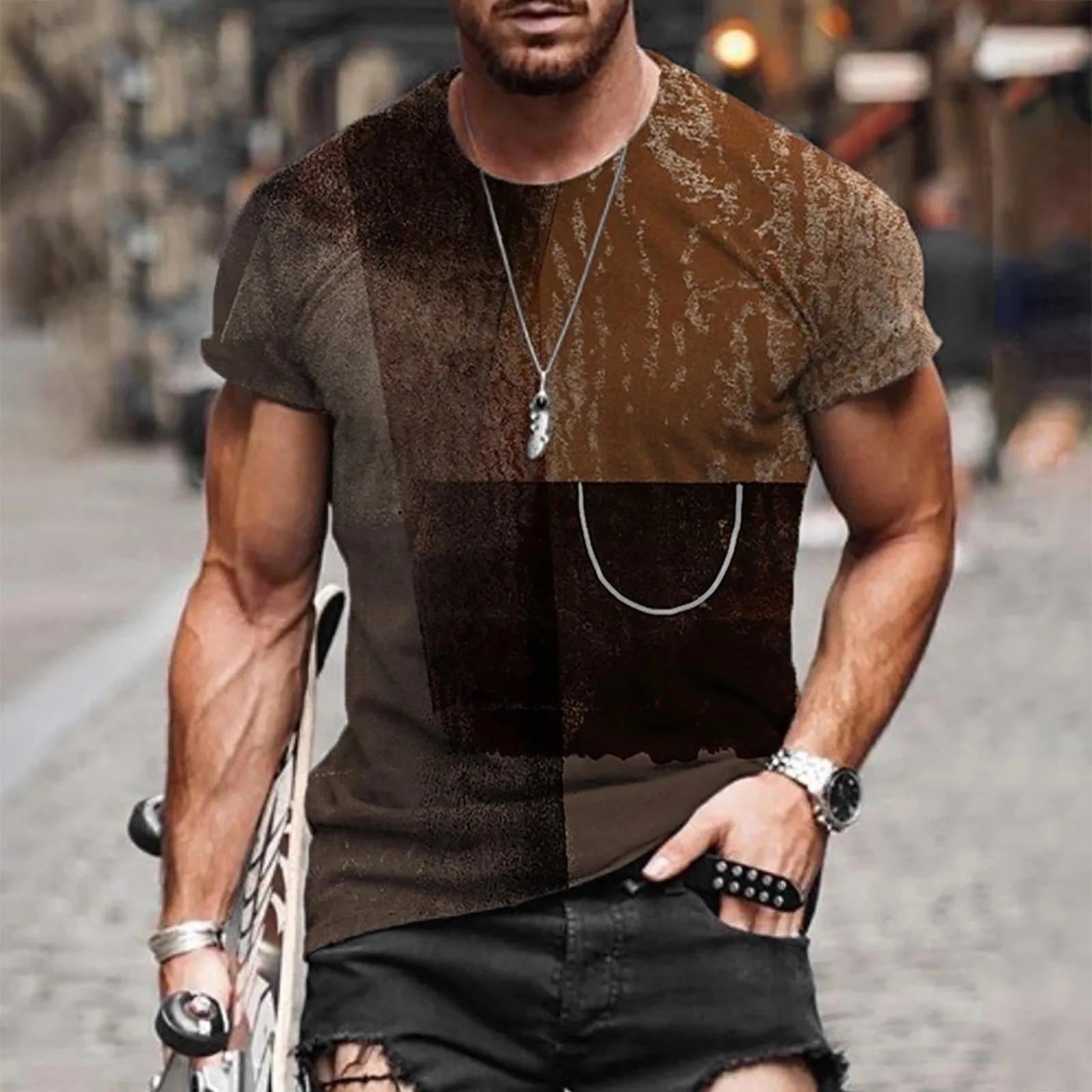 Мужская Летняя Повседневная футболка с коротким рукавом и круглым вырезом