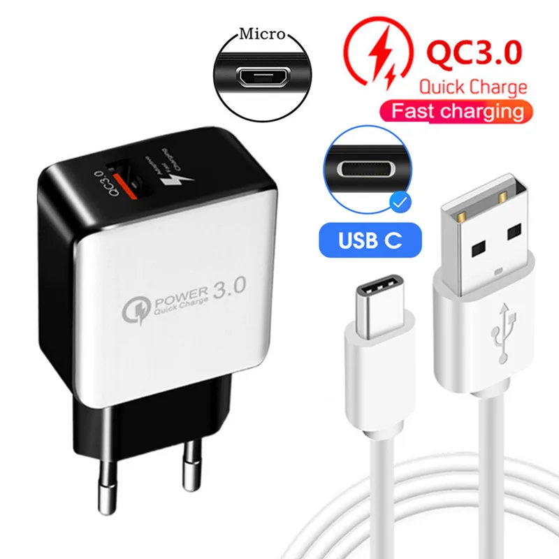 Зарядное устройство USB Type-C с поддержкой быстрой зарядки 3,0, Micro USB, кабель для быстрой зарядки для Xiaomi, Samsung A22, Huawei Honor, NOKIA X10, G20, зарядное устройство для телефона
