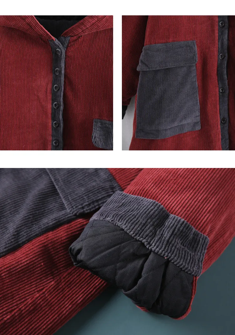 Женские винтажные вельветовые парки, теплая Лоскутная цветная одежд...
