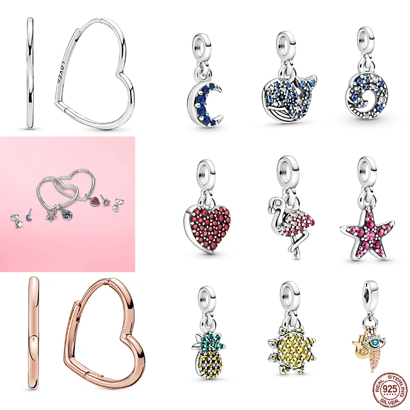 Женские серьги из серебра 925 пробы, с сердечками, Луной и звездами