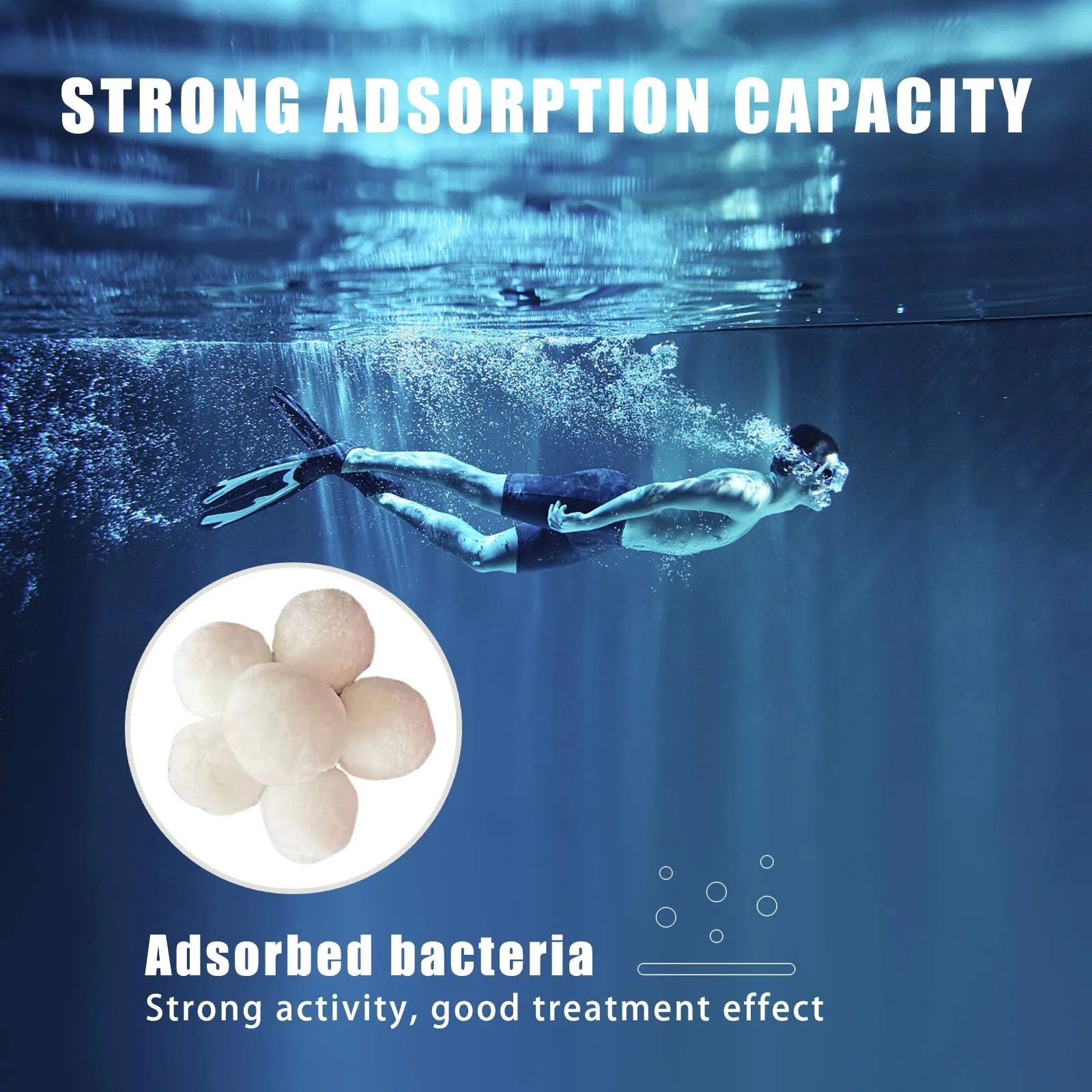 Замена песка фильтра: шар фильтра является идеальным заменителем песка фильтра и стекла фильтра. 700 г заменяет около 25 кг фильтрующего песка, который весит светильник и прост в эксплуатации.