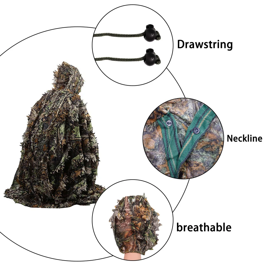 Листья пончо джунгли гилли костюмы Охота Камуфляж 3D бионический лист йоуи сетка добавляют пуговицы более удобный один размер