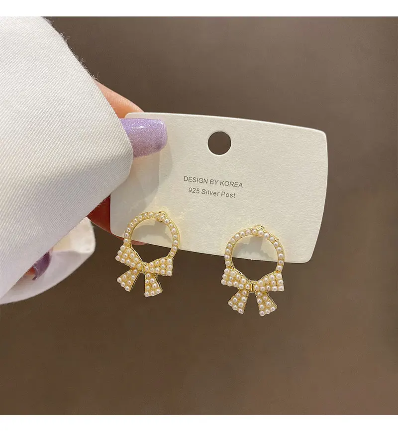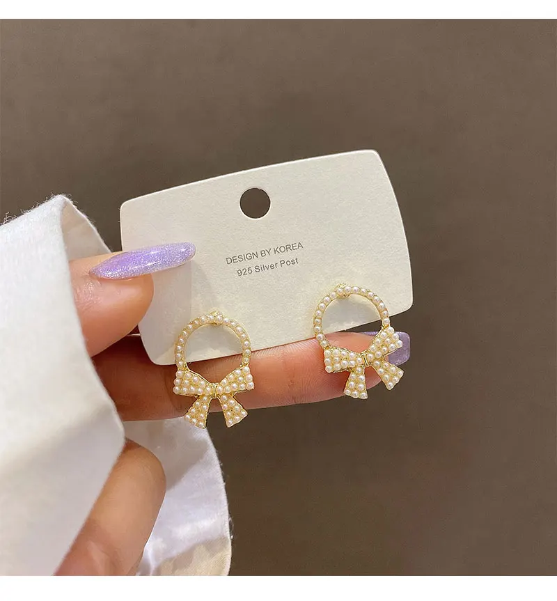 Милые жемчужные золотые серьги-капли с бантом для женщин, корейская бижутерия, Свадебные Элегантные комплекты для девочек, аксессуары, необычные подарки для студентов