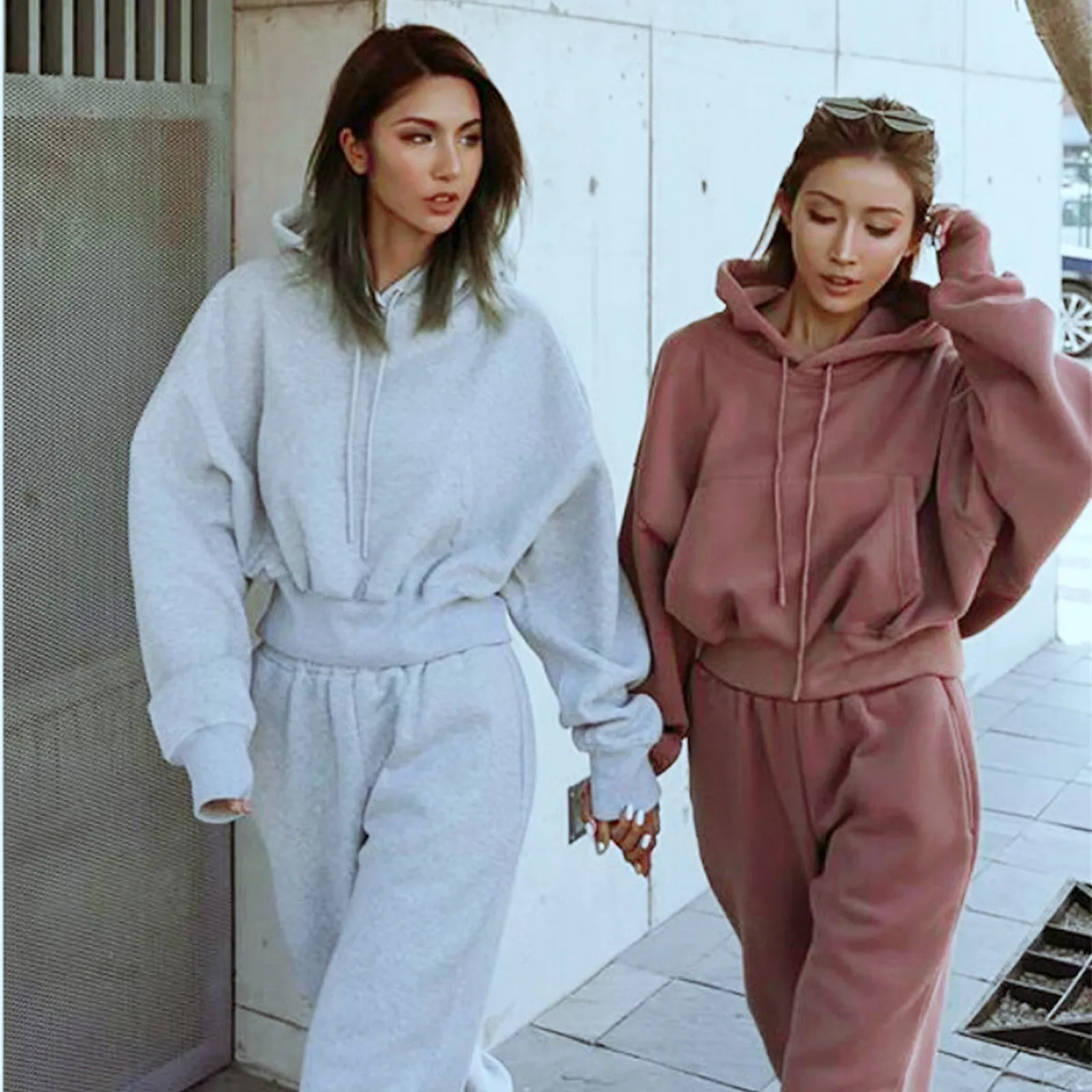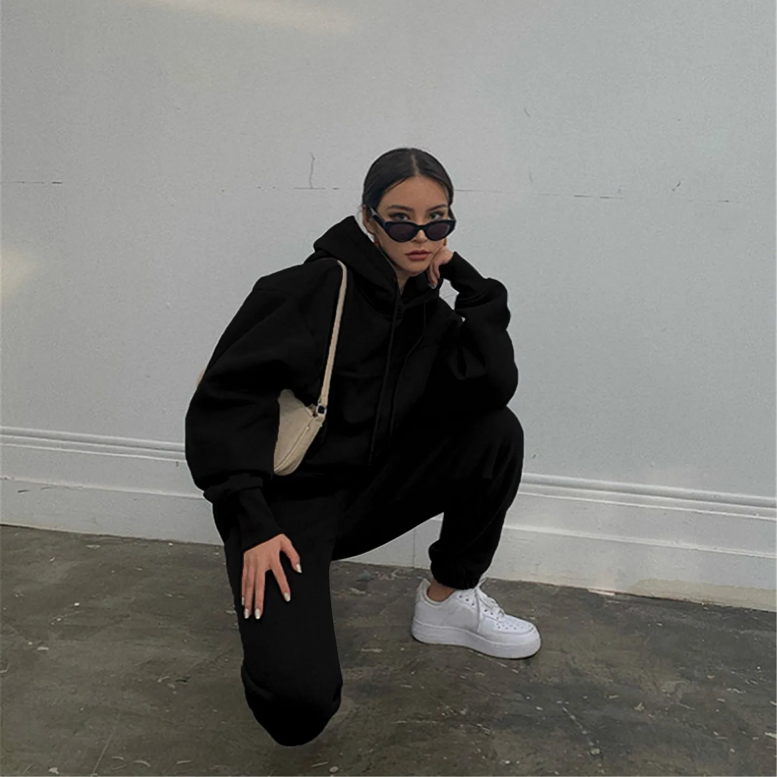 Спортивный костюм для женщин 2021 зимний женский Повседневный однотонный с длинным рукавом Толстовка брюки свитер спортивный костюм moletom feminin