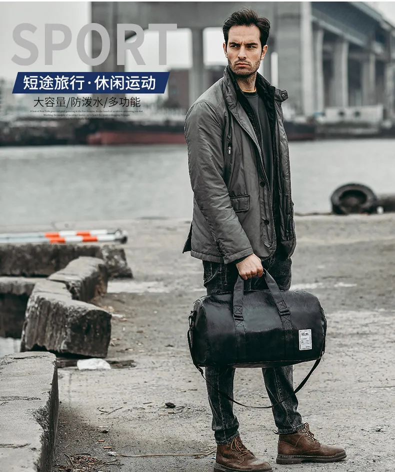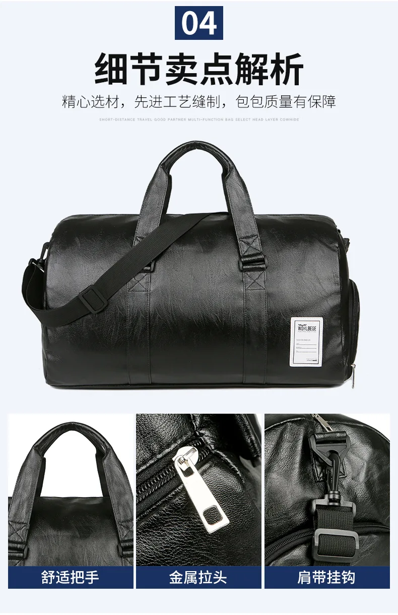 Вместительная кожаная дорожная сумка, Водонепроницаемая спортивная ...
