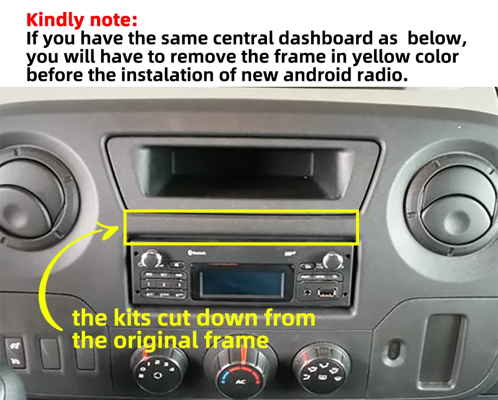 Если у вас есть та же Центральная панель управления, что и ниже, вам придется удалить рамку в желтом цвете перед установкой нового android радио.