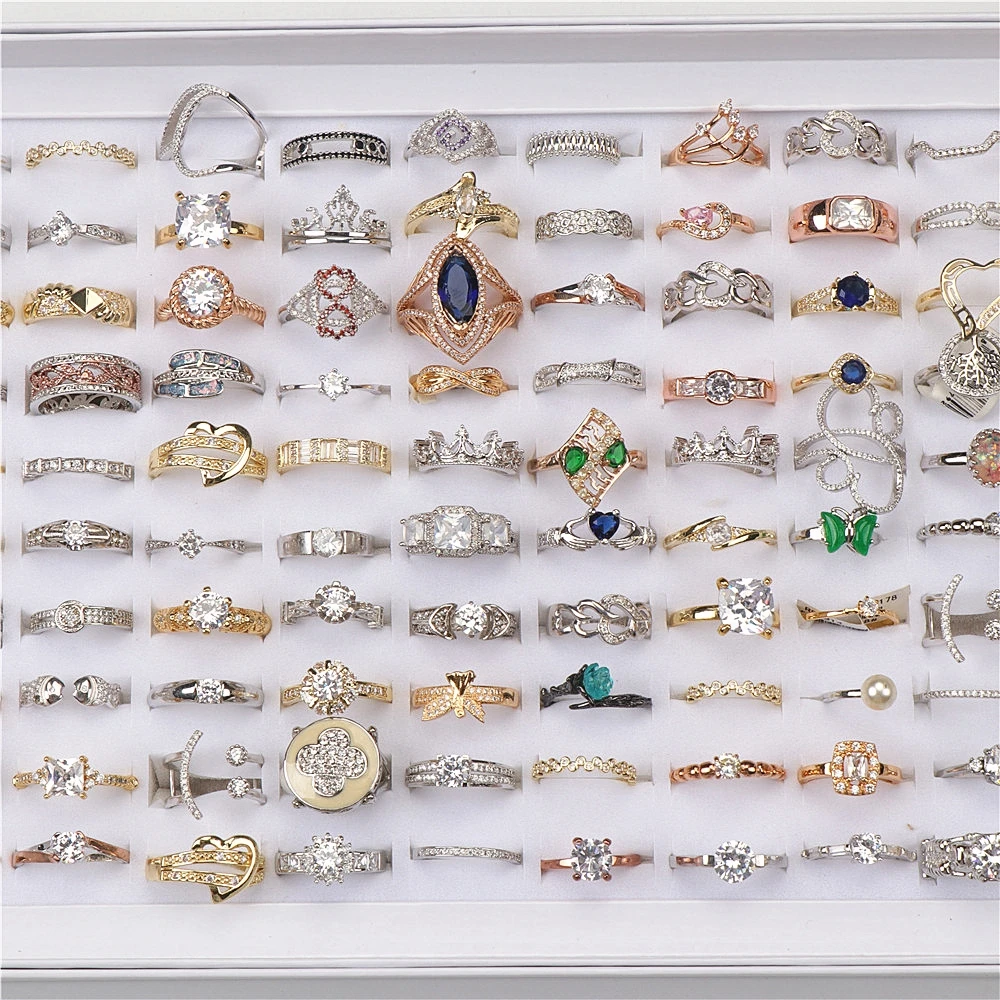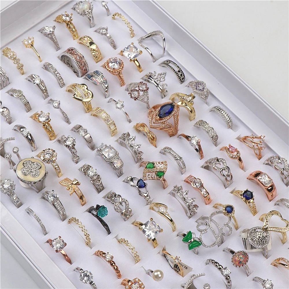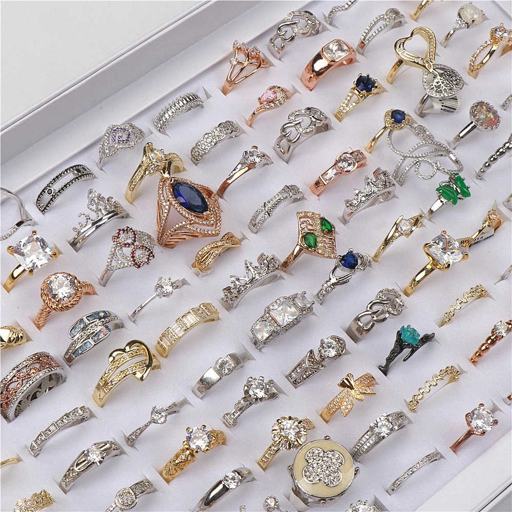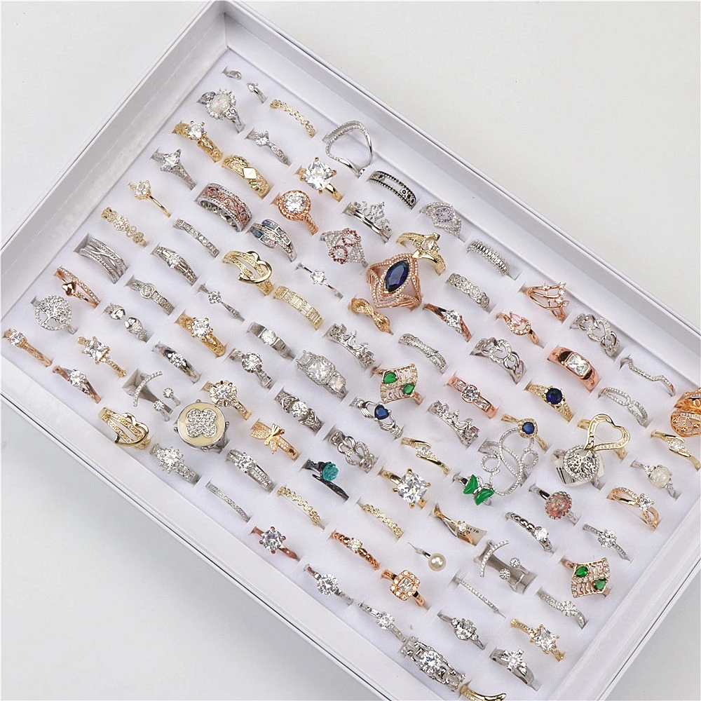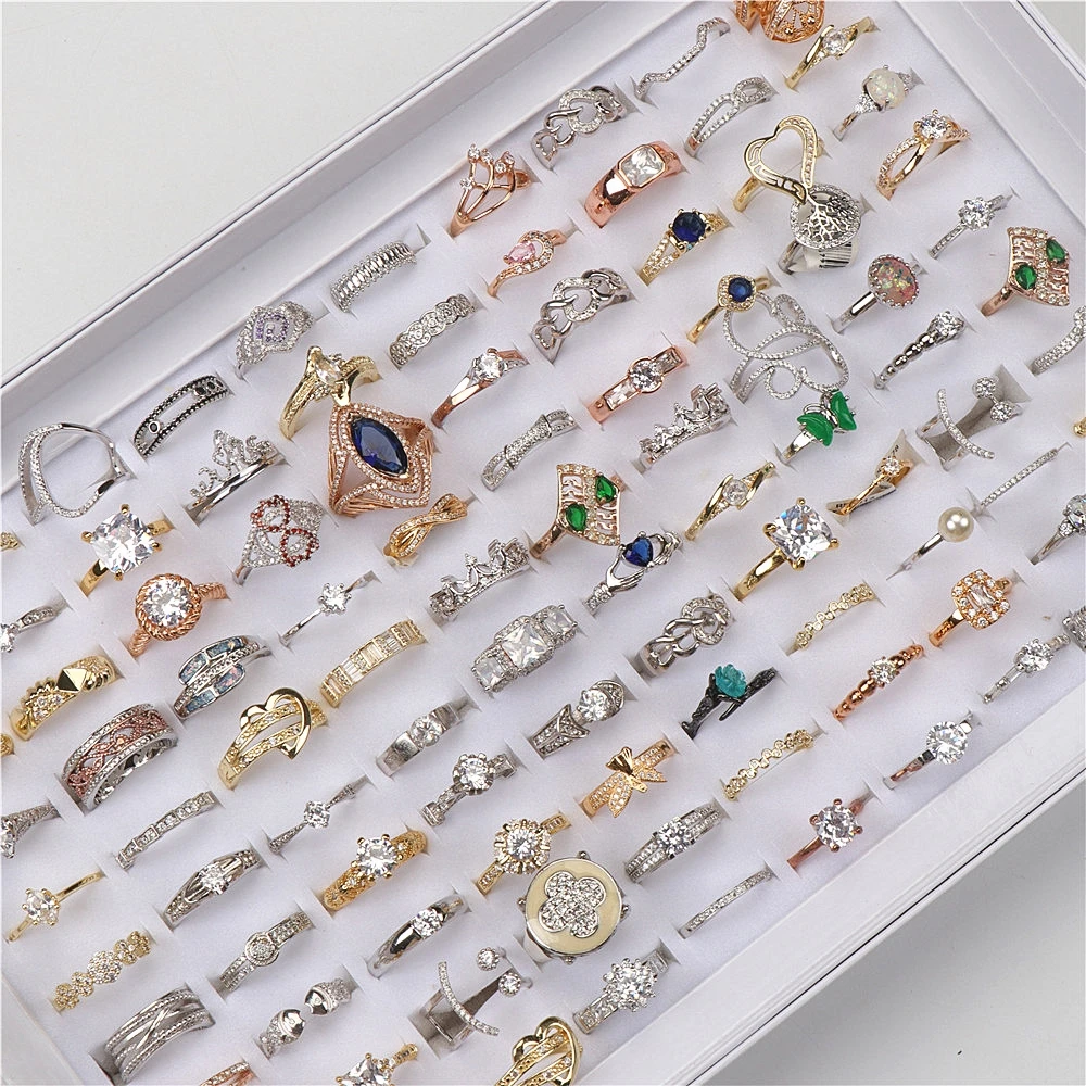 24 шт.лот модные сверкающие микро-инкрустированные высококачественные циркониевые золотые и серебряные ювелирные кольца для женщин Смешанные стильные подарки Вечерние